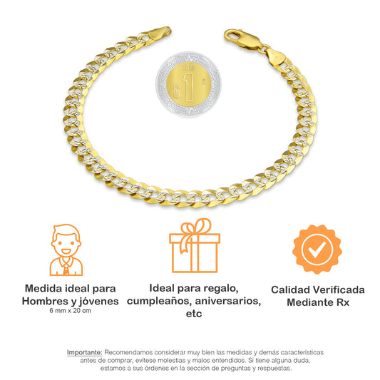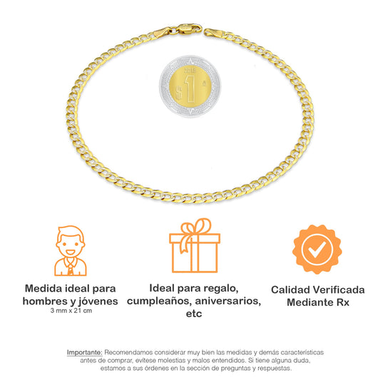 MR10PC045 Pulsera Para Caballero Oro Sólido 10K Mod Cubana Americana Diamantada 3 mm x 21 cm