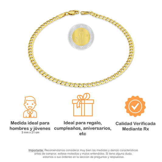 MR10PC046 Pulsera Para Caballero Oro Sólido 10K Mod Cubana Americana Lisa 3 mm x 21 cm