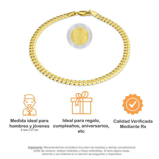 MR10PC047 Pulsera Para Caballero Oro Sólido 10K Mod Cubana Americana Lisa 4 mm x 21 cm