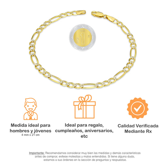 MR10PC049 Pulsera Para Caballero Oro Sólido 10K Mod Figaro 3*1 Diamantada 4 mm x 21 cm
