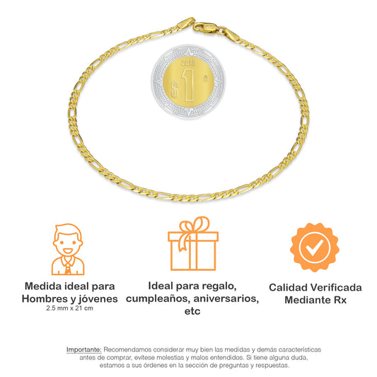 MR14PC028 Pulsera Para Caballero Oro Sólido 14K EMC14 Modelo Fígaro 3*1 Lisa 2.5 mm x 21 cm