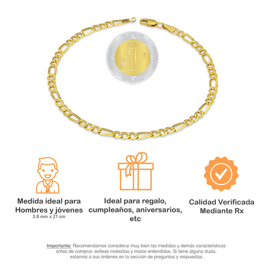 MR14PC031 Pulsera Para Caballero Oro Sólido 14K EMF14 Modelo Fígaro 3*1 Lisa 3.8 mm x 21 cm