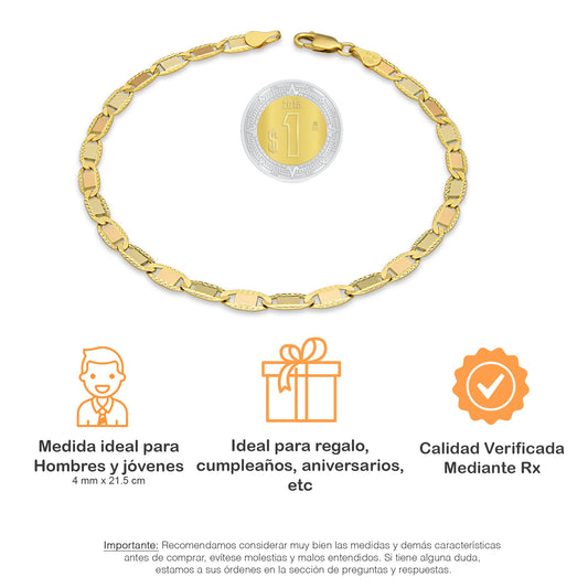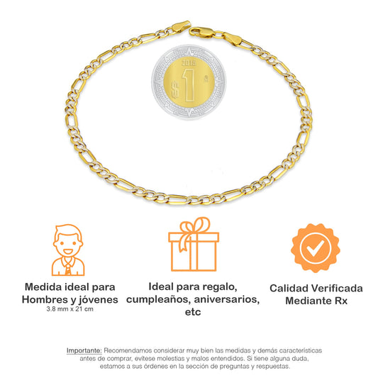 MR14PC029 Pulsera Para Caballero Oro Sólido 14K EMC14 Modelo Fígaro 3*1 Segrinado Diagonal 4 mm x 21 cm