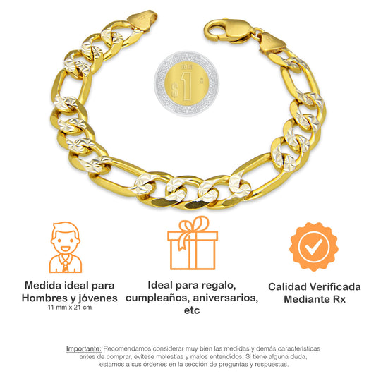 MR14PC038 Pulsera Para Caballero Oro Sólido 14K Mod Fígaro 3*1 Diamantada 11 mm x 21 cm