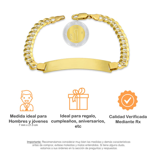 MR14PC037 Pulsera Para Caballero Oro Sólido 14K Mod Figaruchi 0x1 Diamantada 9 mm x 21 cm