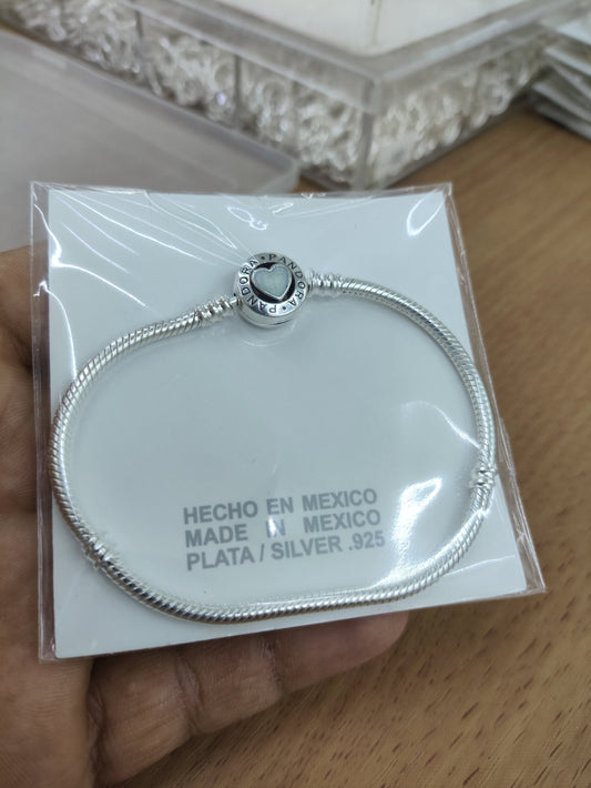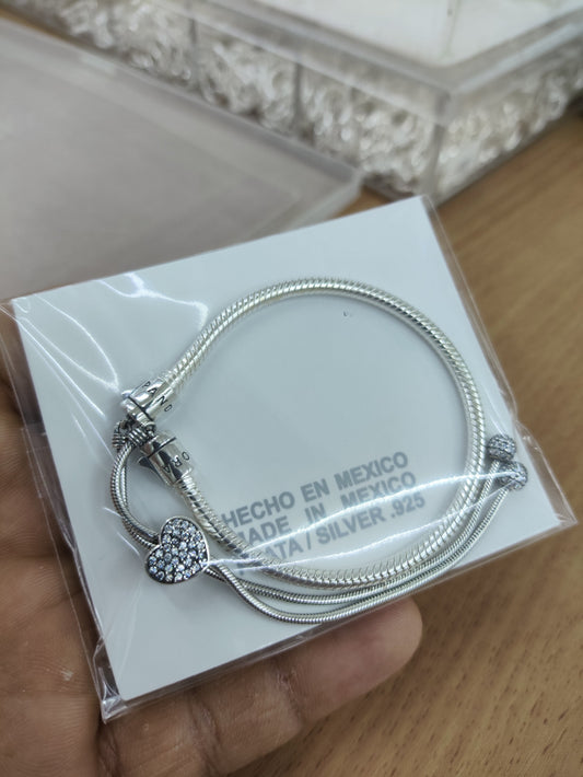 TMPPD011-17 Pulsera Dama Pand Corazón Centro Blanco 17 cm en Plata Fina .925