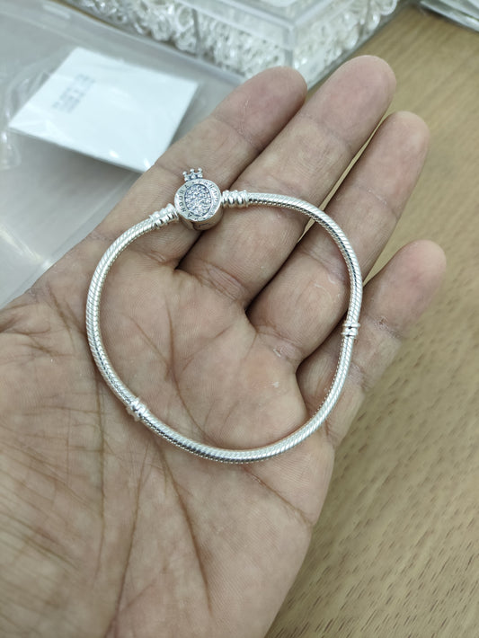 TMPPD012-18 Pulsera Dama Pand Óvalo Centro Zirconias Corona 18 cm en Plata Fina .925