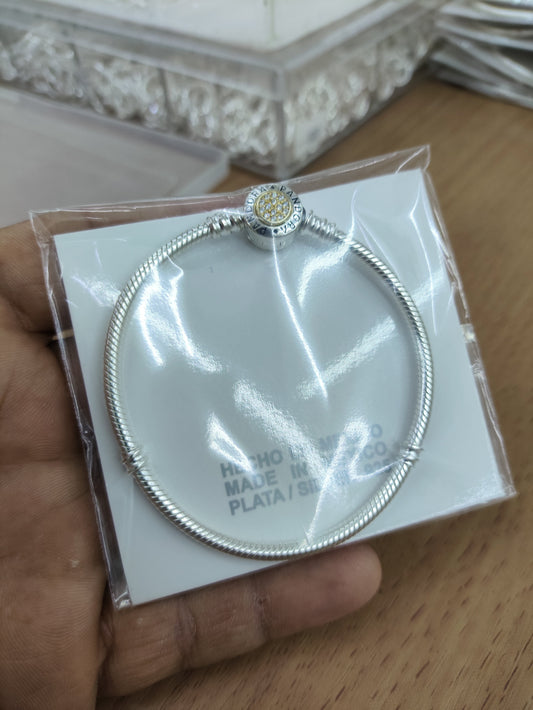 TMPPD013-18 Pulsera Dama Pand Círculo Centro Dorado 18 cm en Plata Fina .925