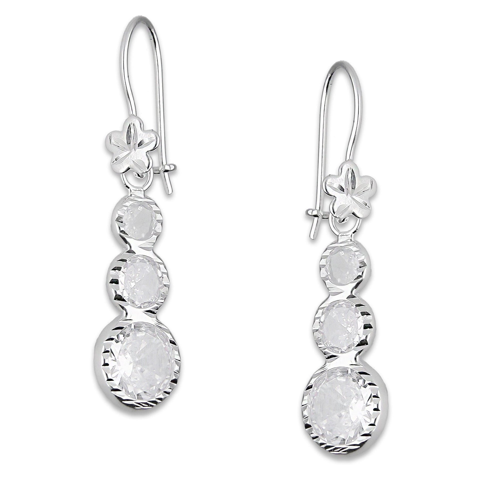 :: Aretes De Arillo Dama Eslabones Circular Ascendente Blanco en Plata .925