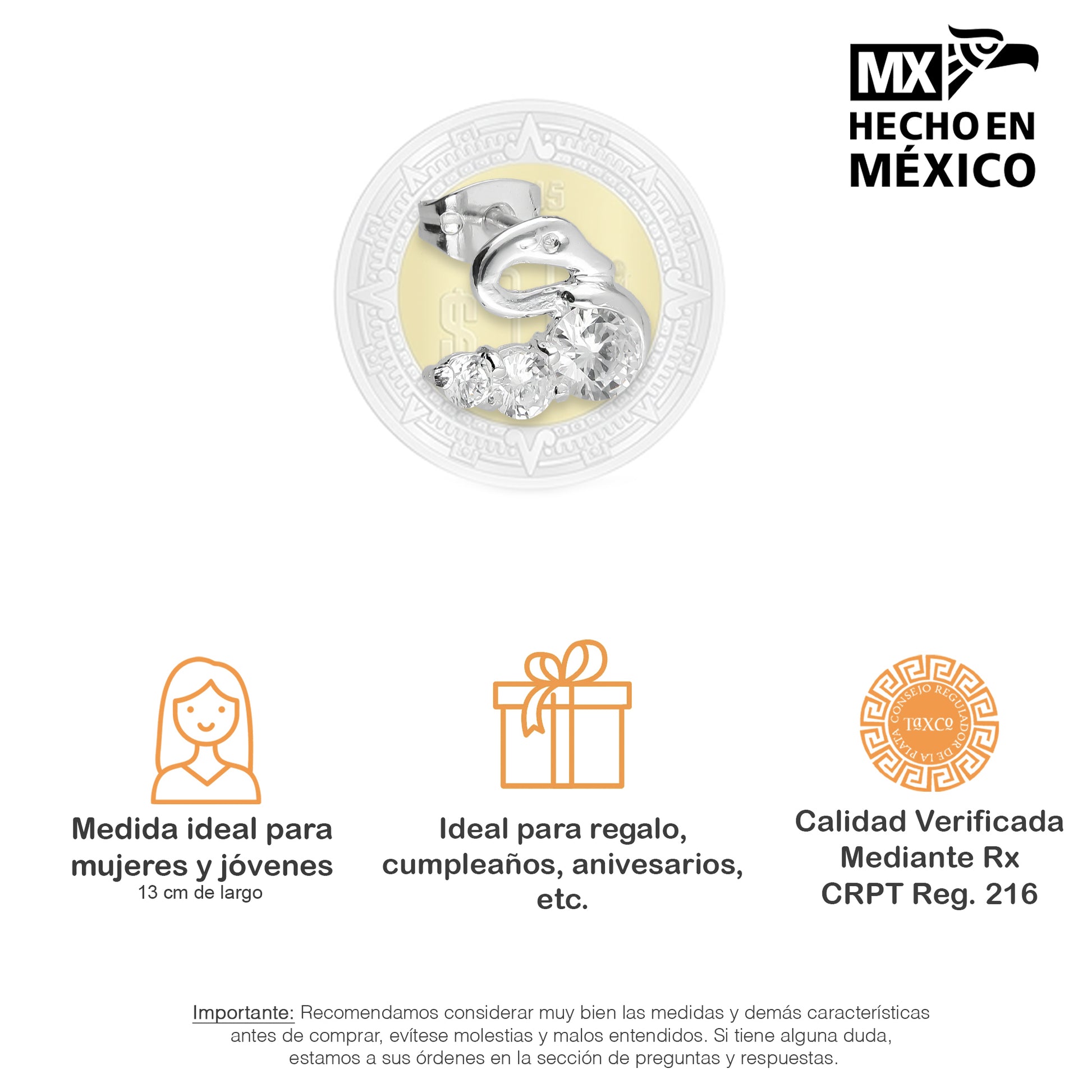 - Metal: Plata de Ley .925 (Certificado #216 CRPT)