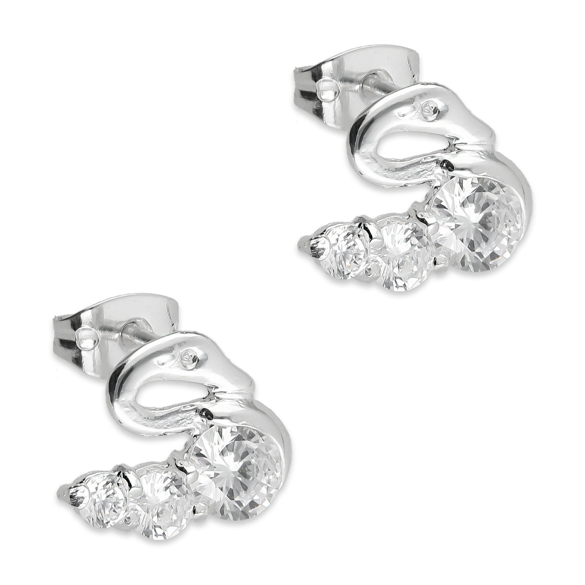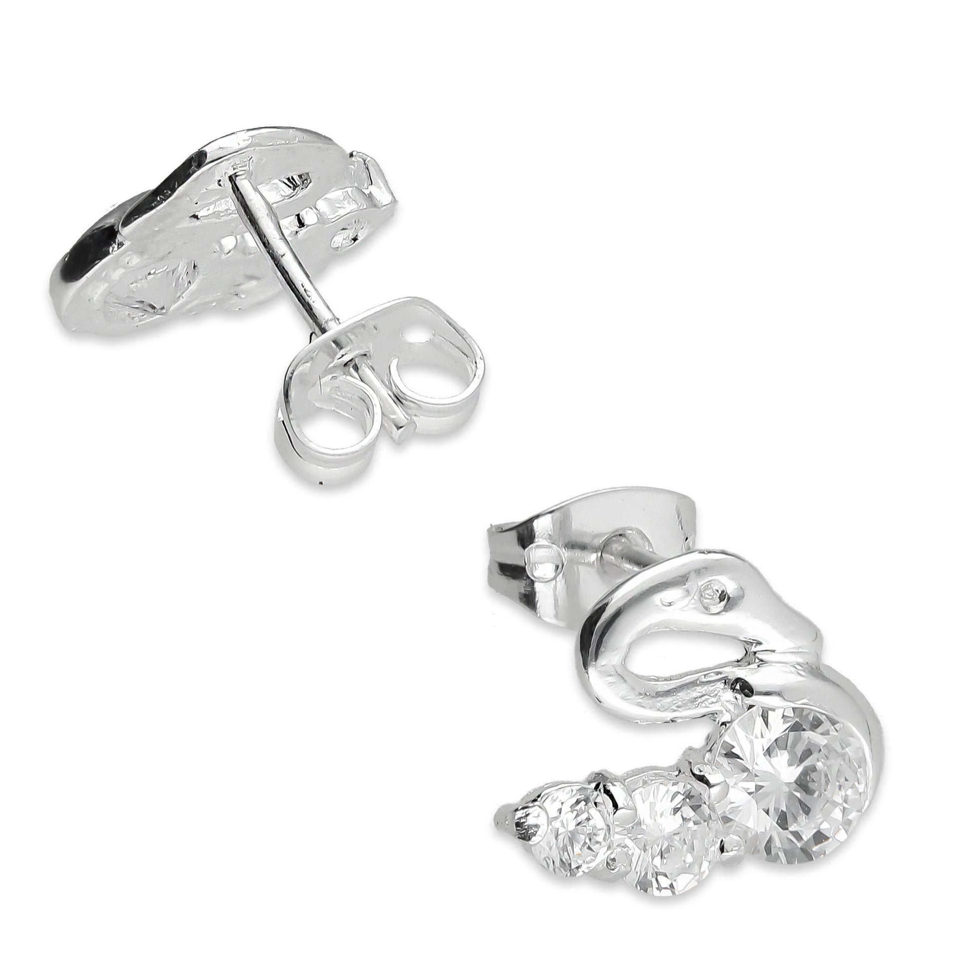 :: Arete Broquel Cisne 3 Zirconias Plata .925 Taxco