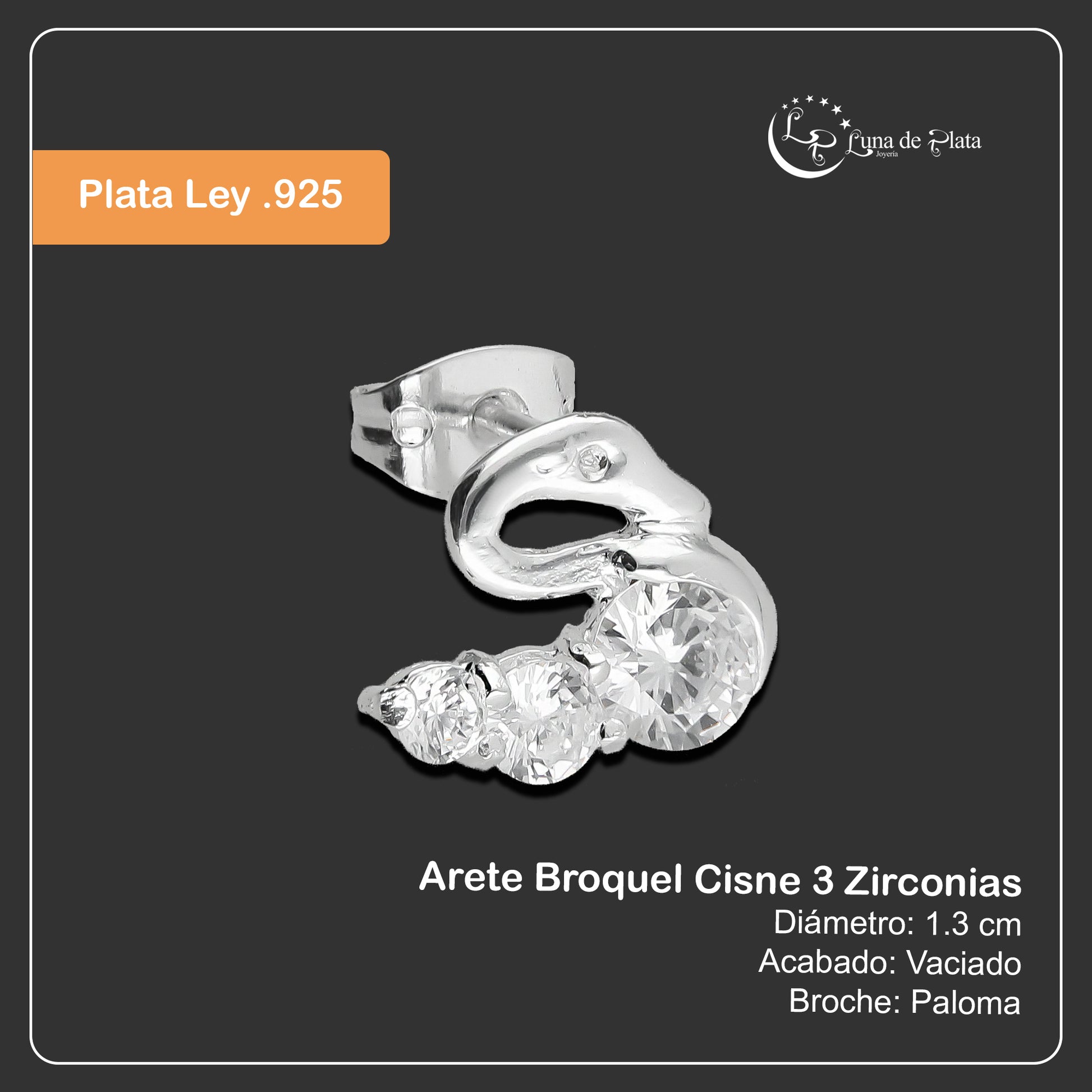LPAP096 Arete Broquel Cisne 3 Zirconias Plata .925 Taxco 3138030304