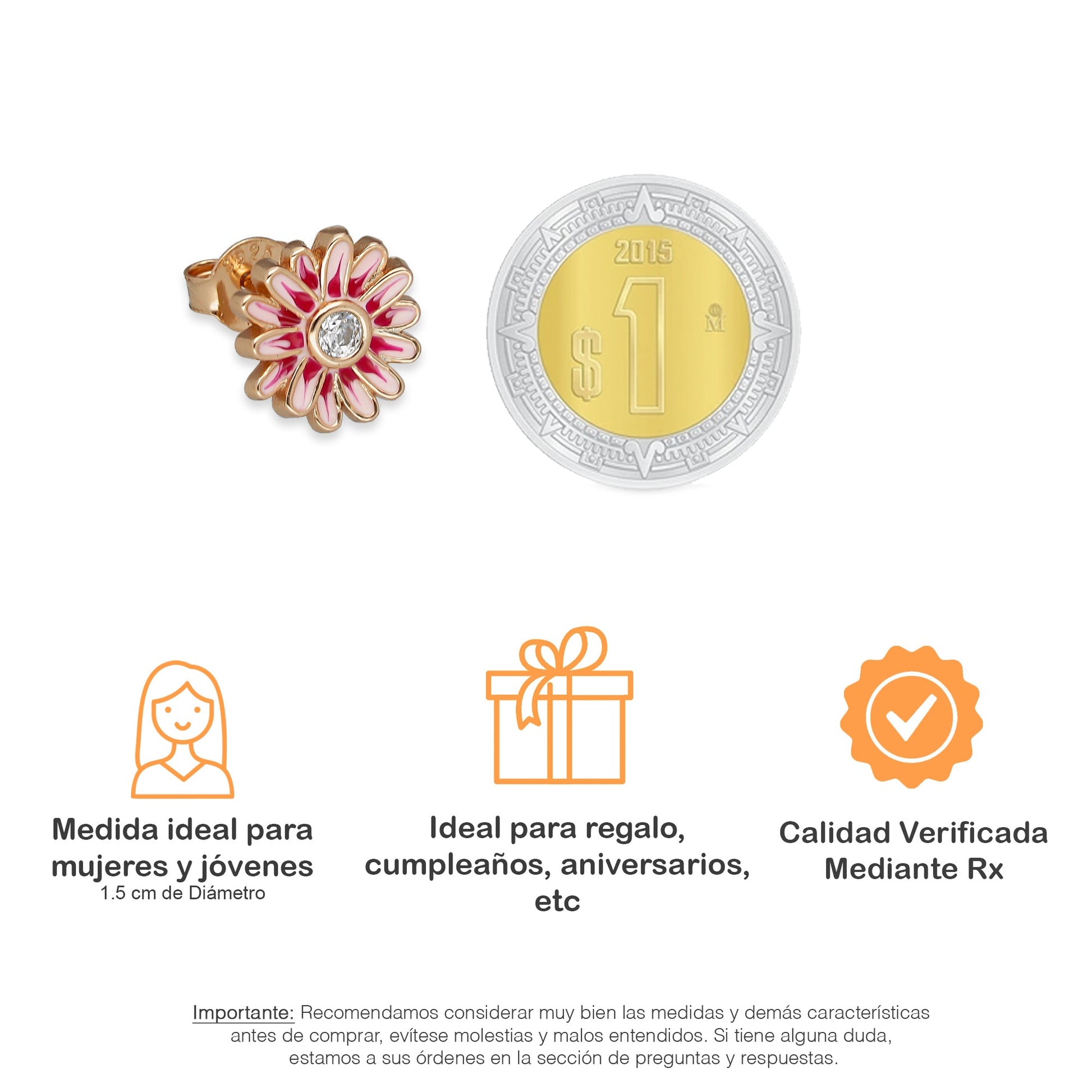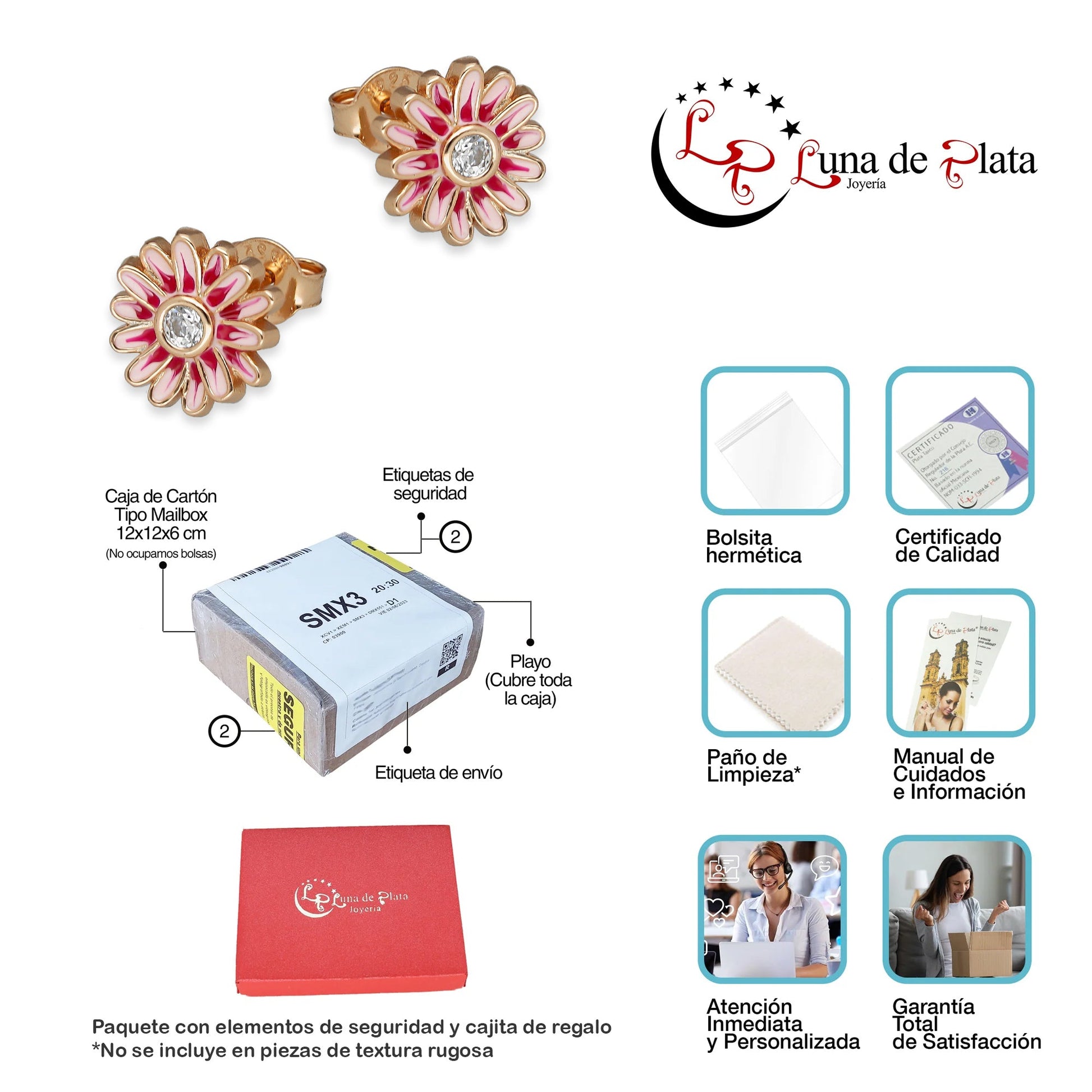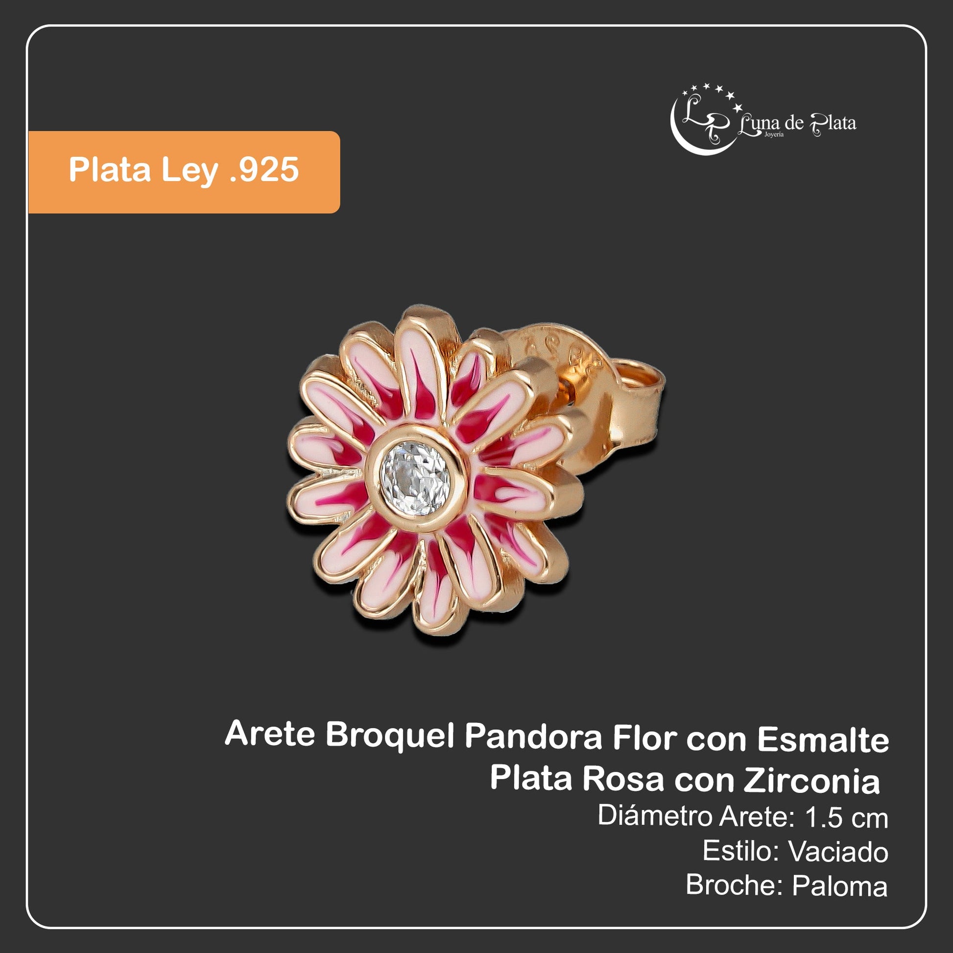 LPAP139 Arete Broquel Pandora Flor con Esmalte Plata Rosa con Zirconia en Plata .925 Taxco