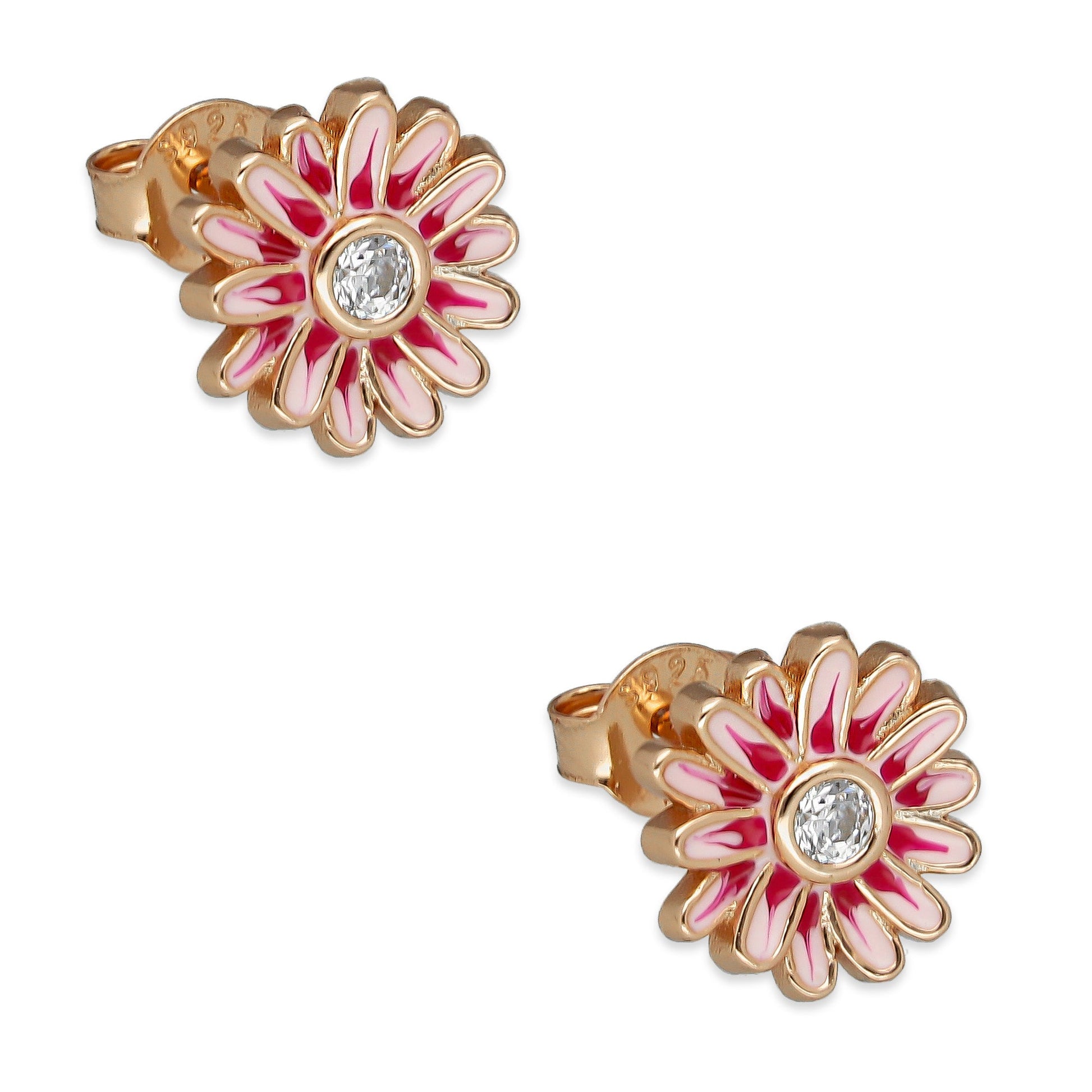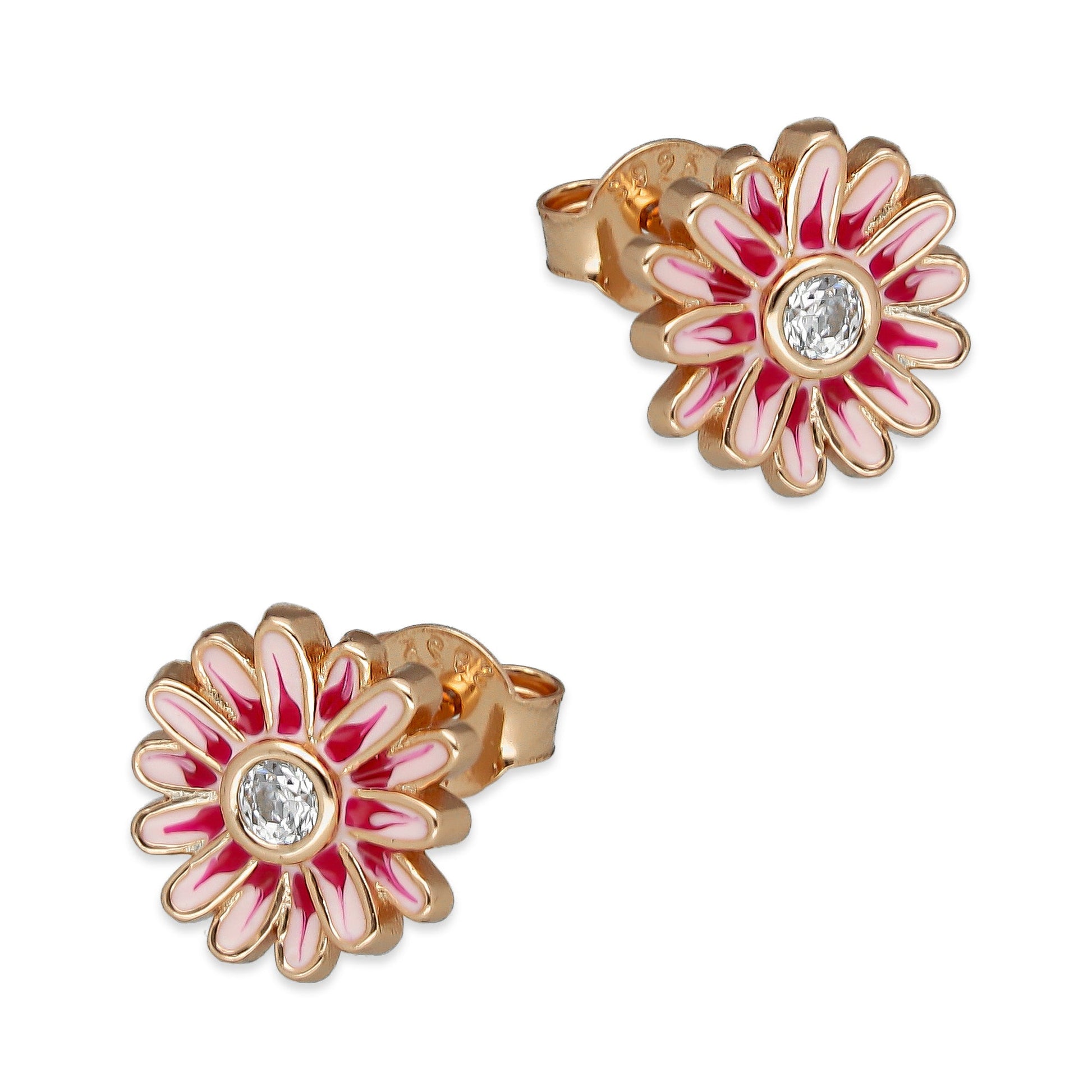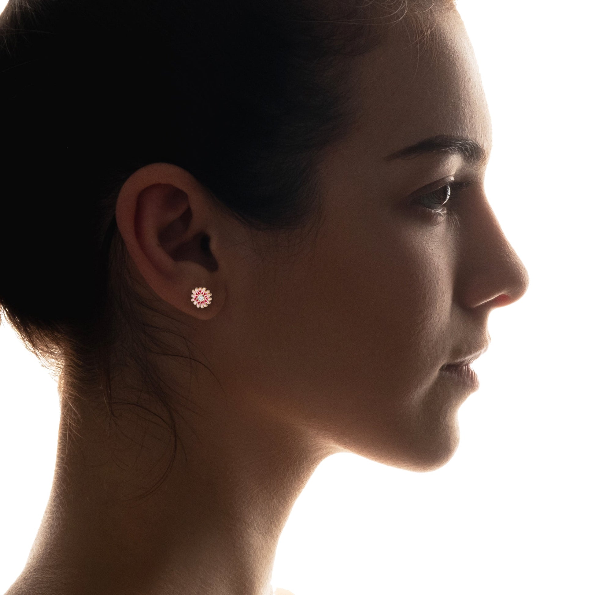 LPAP139 Arete Broquel Pandora Flor con Esmalte Plata Rosa con Zirconia en Plata .925 Taxco
