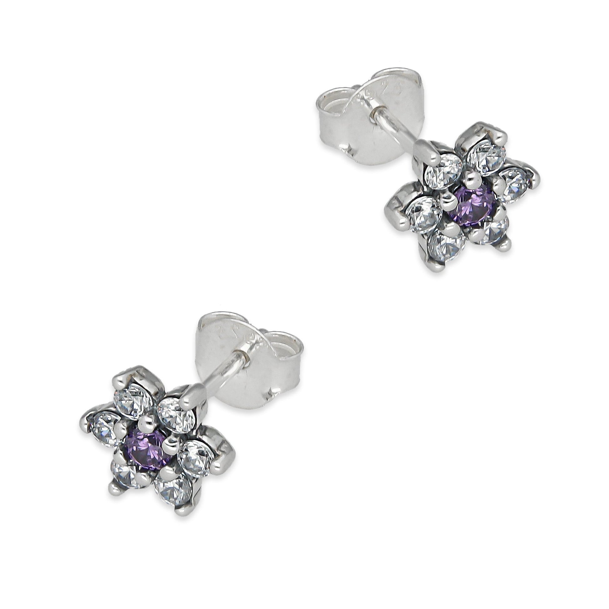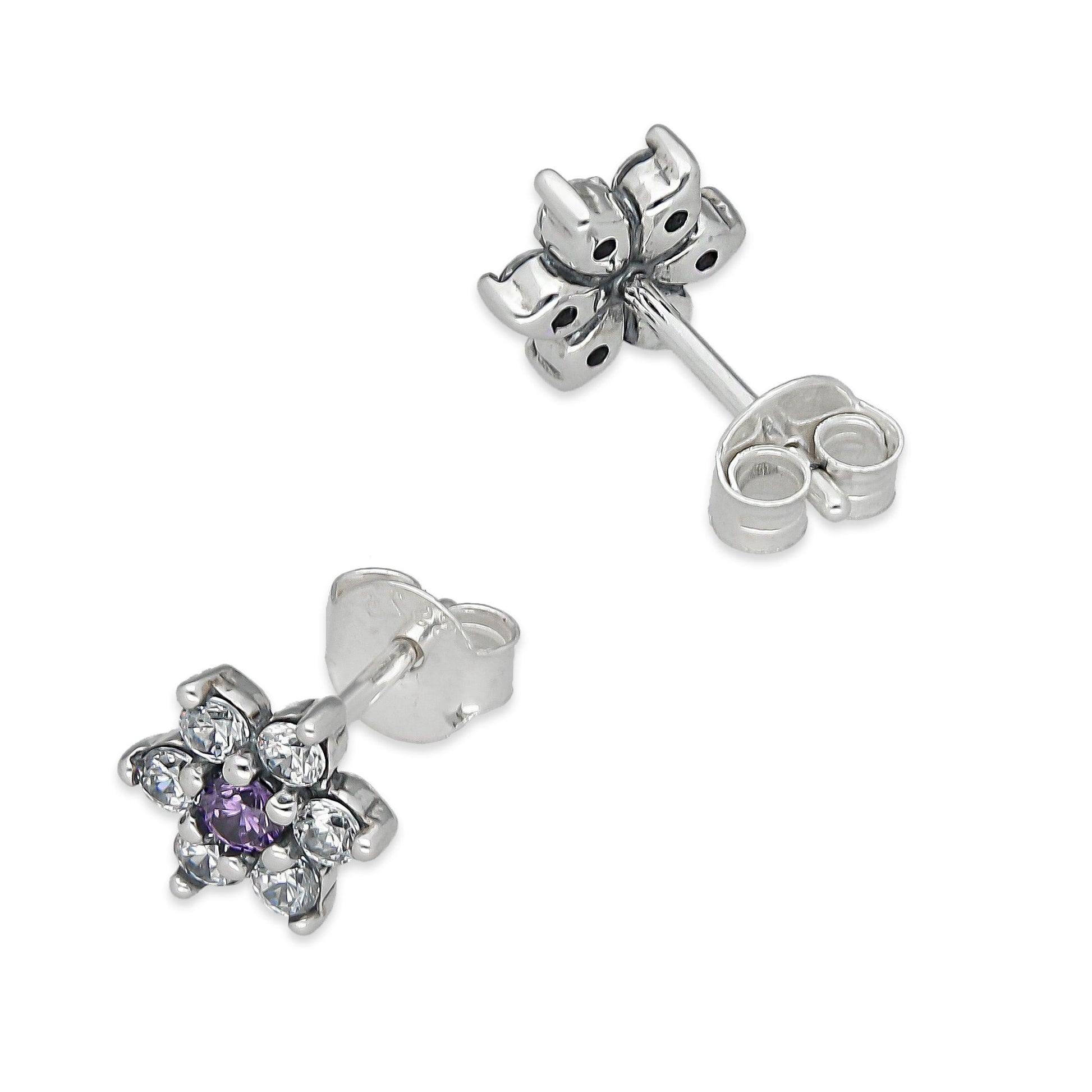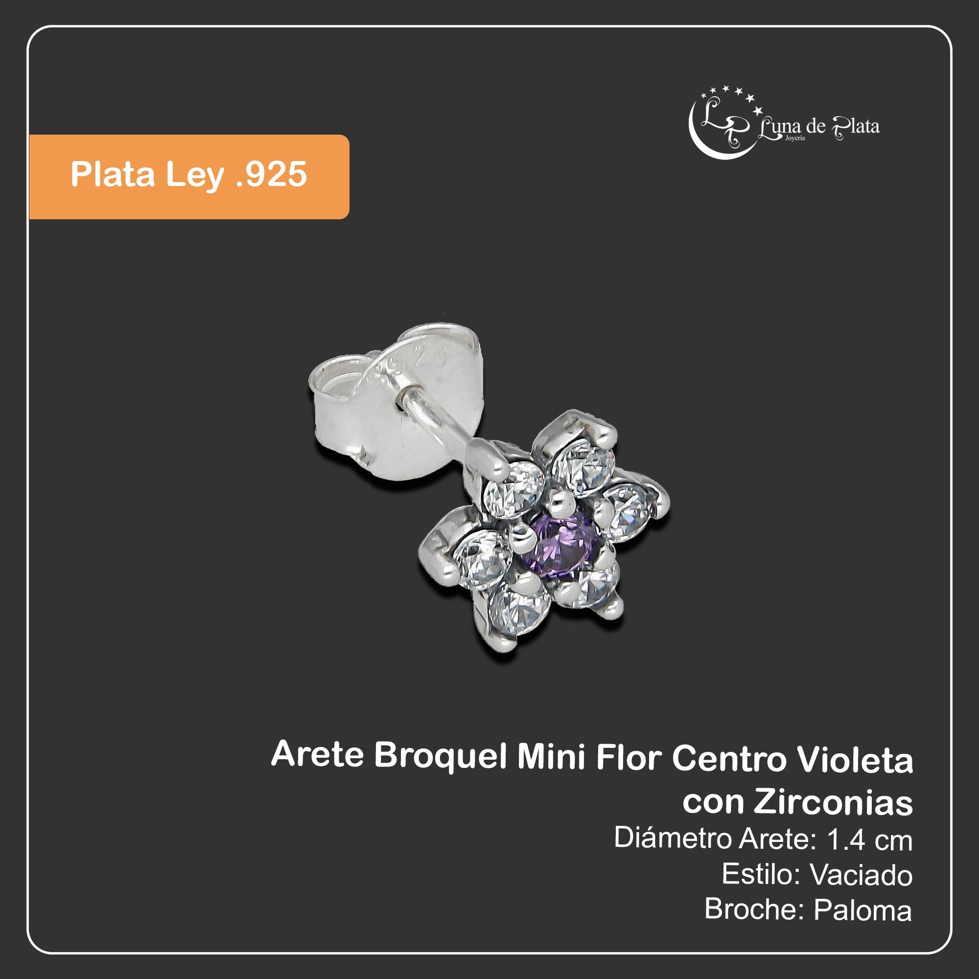 LPAP140 Arete Broquel Mini Flor Centro Violeta con Zirconias en Plata .925 Taxco