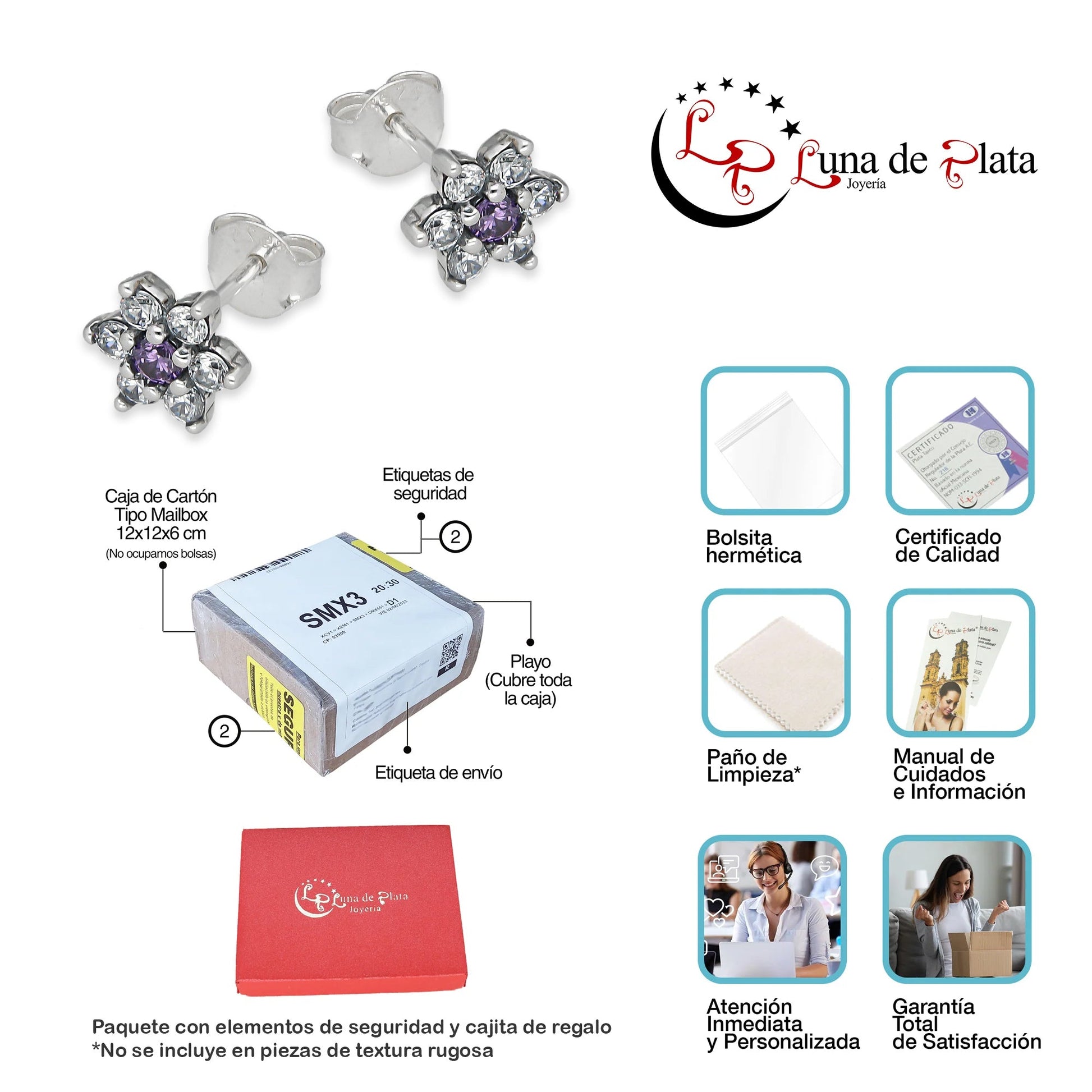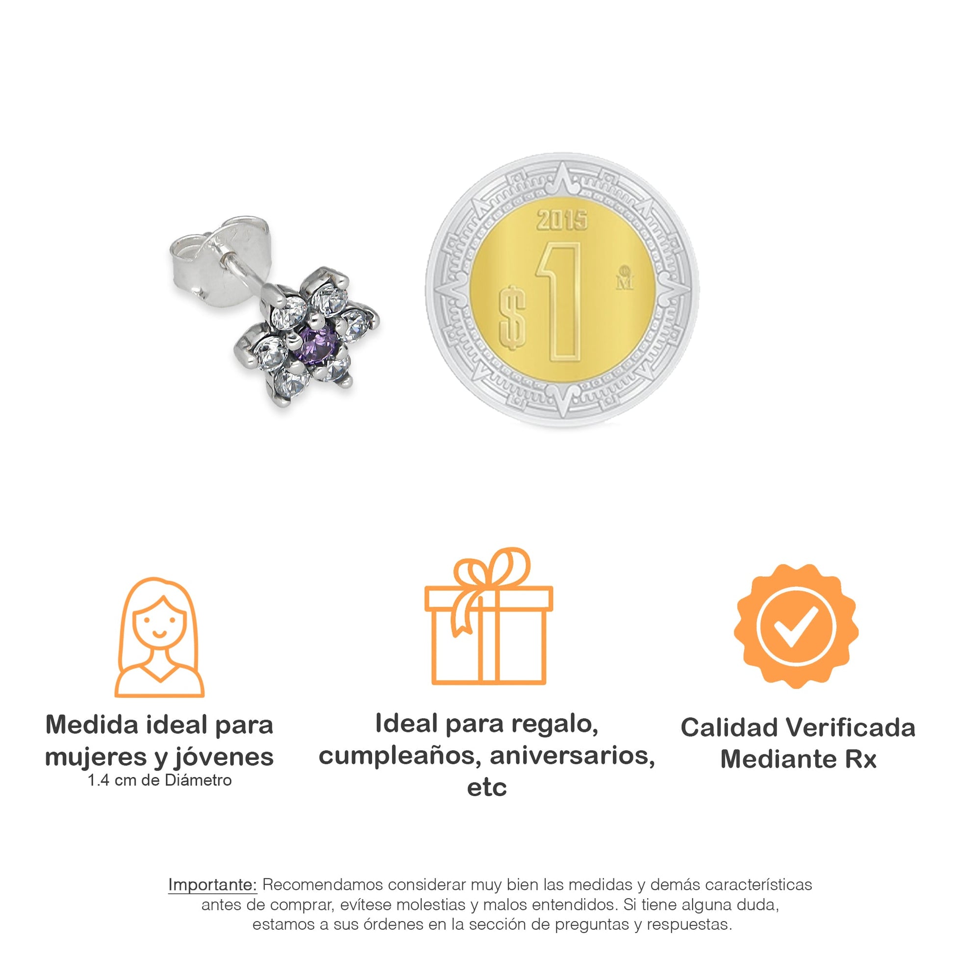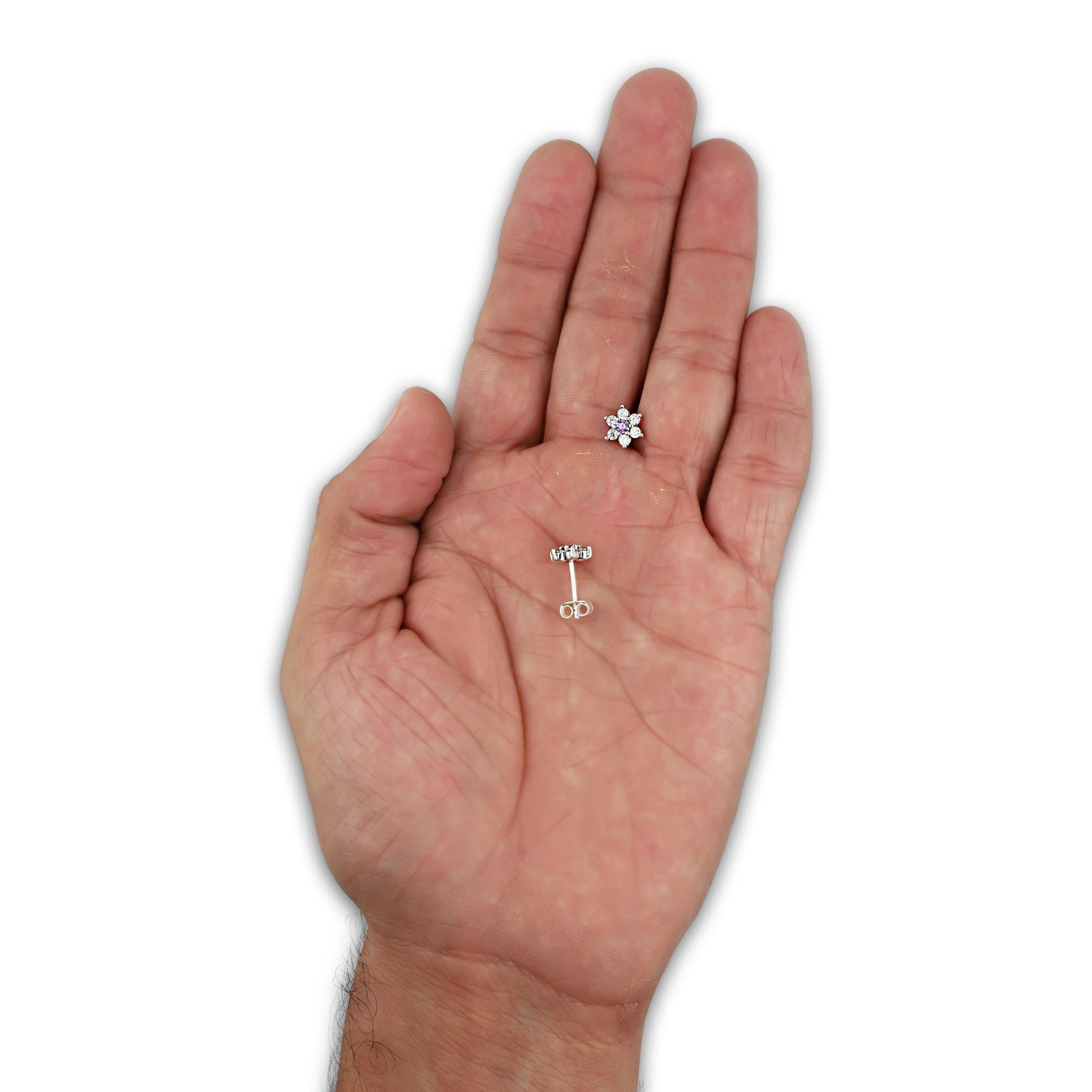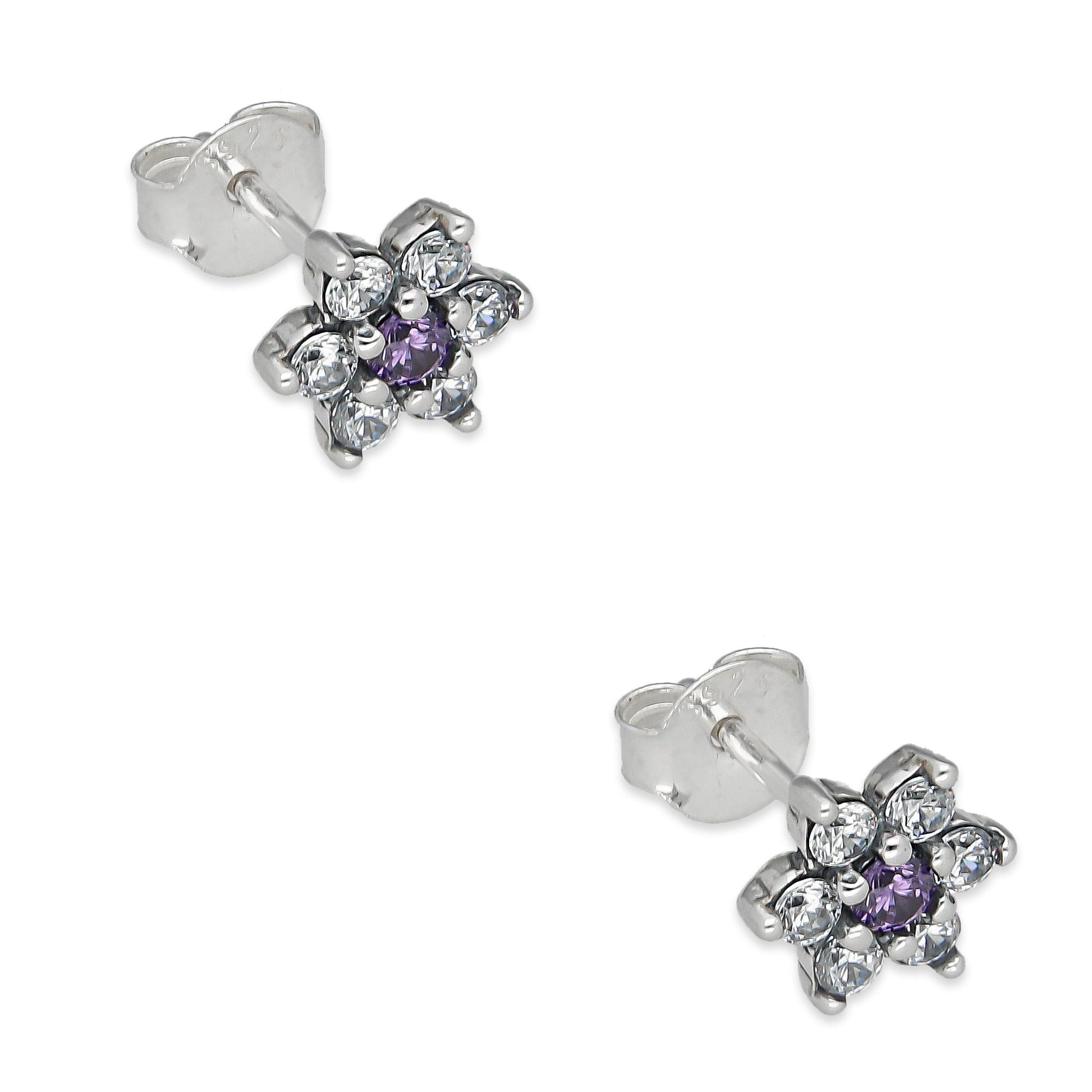 LPAP140 Arete Broquel Mini Flor Centro Violeta con Zirconias en Plata .925 Taxco