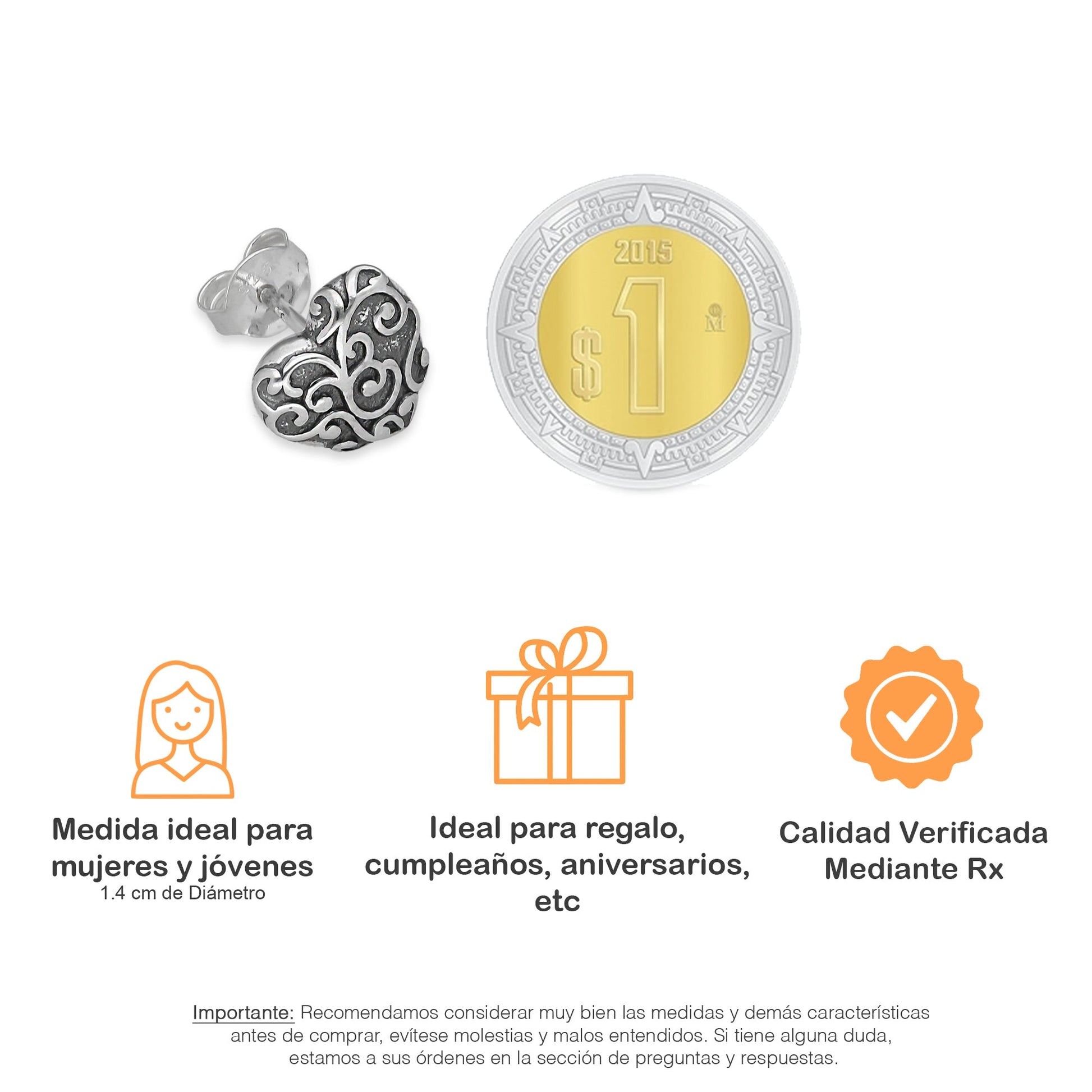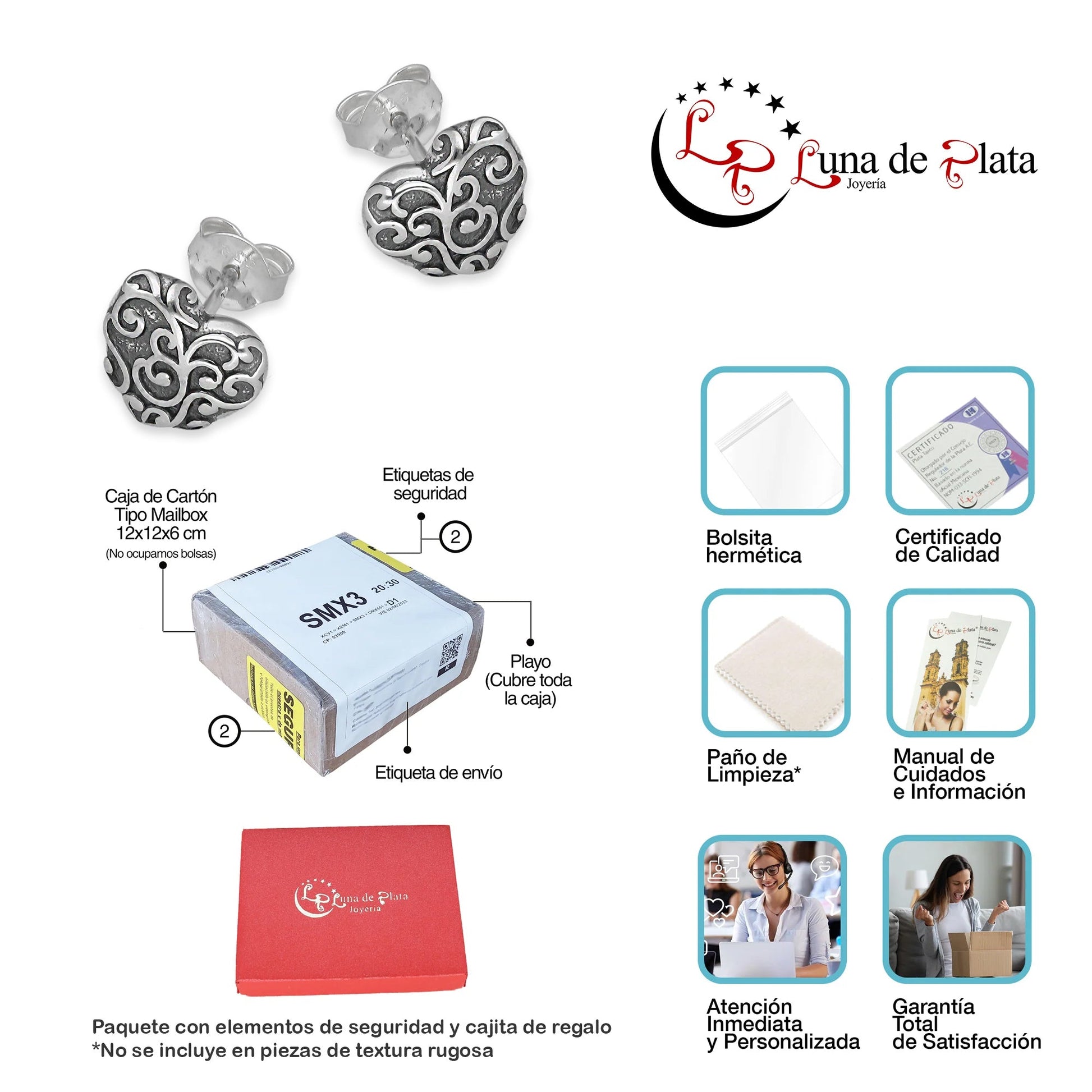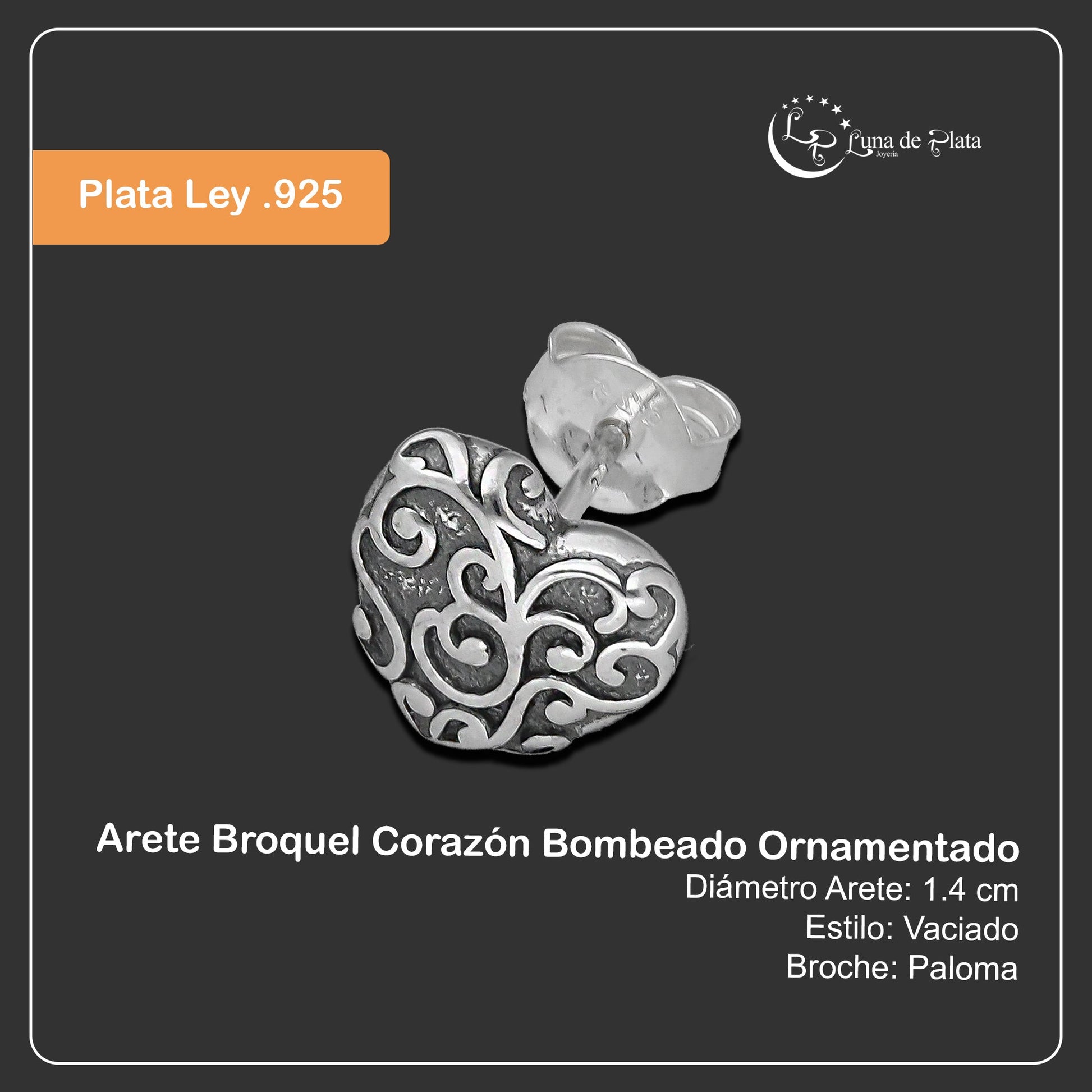 LPAP141 Arete Broquel Corazón Bombeado Ornamentado en Plata .925 Taxco