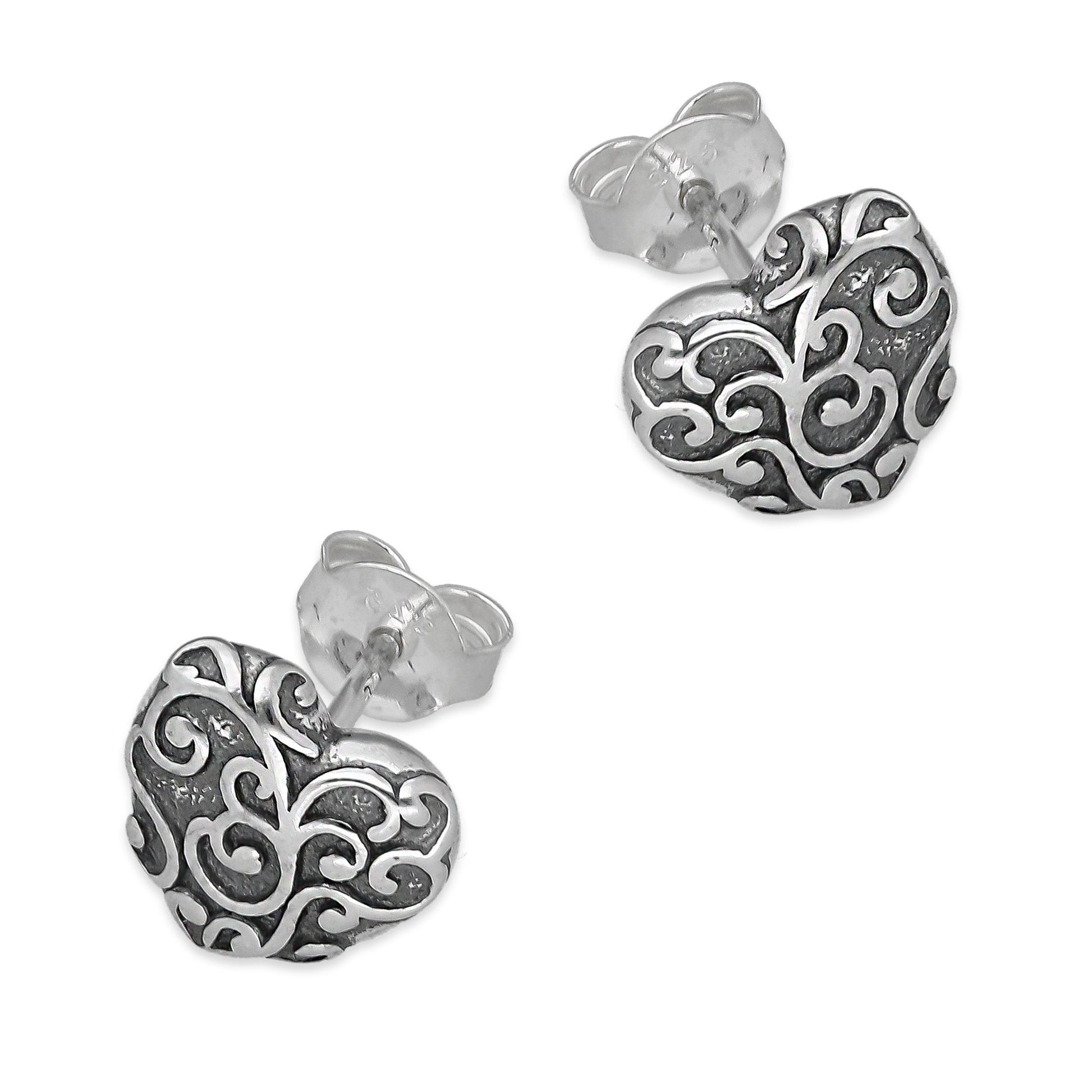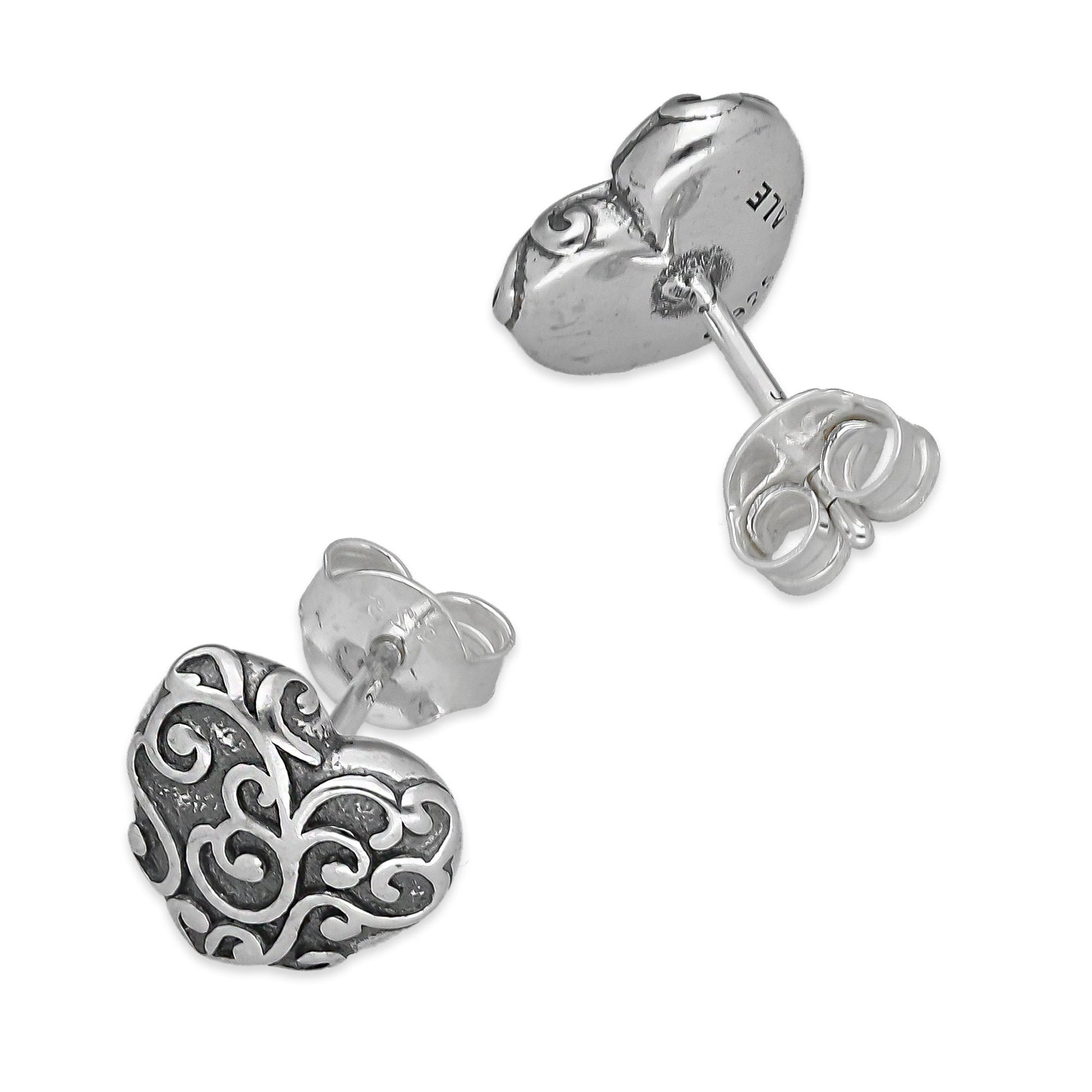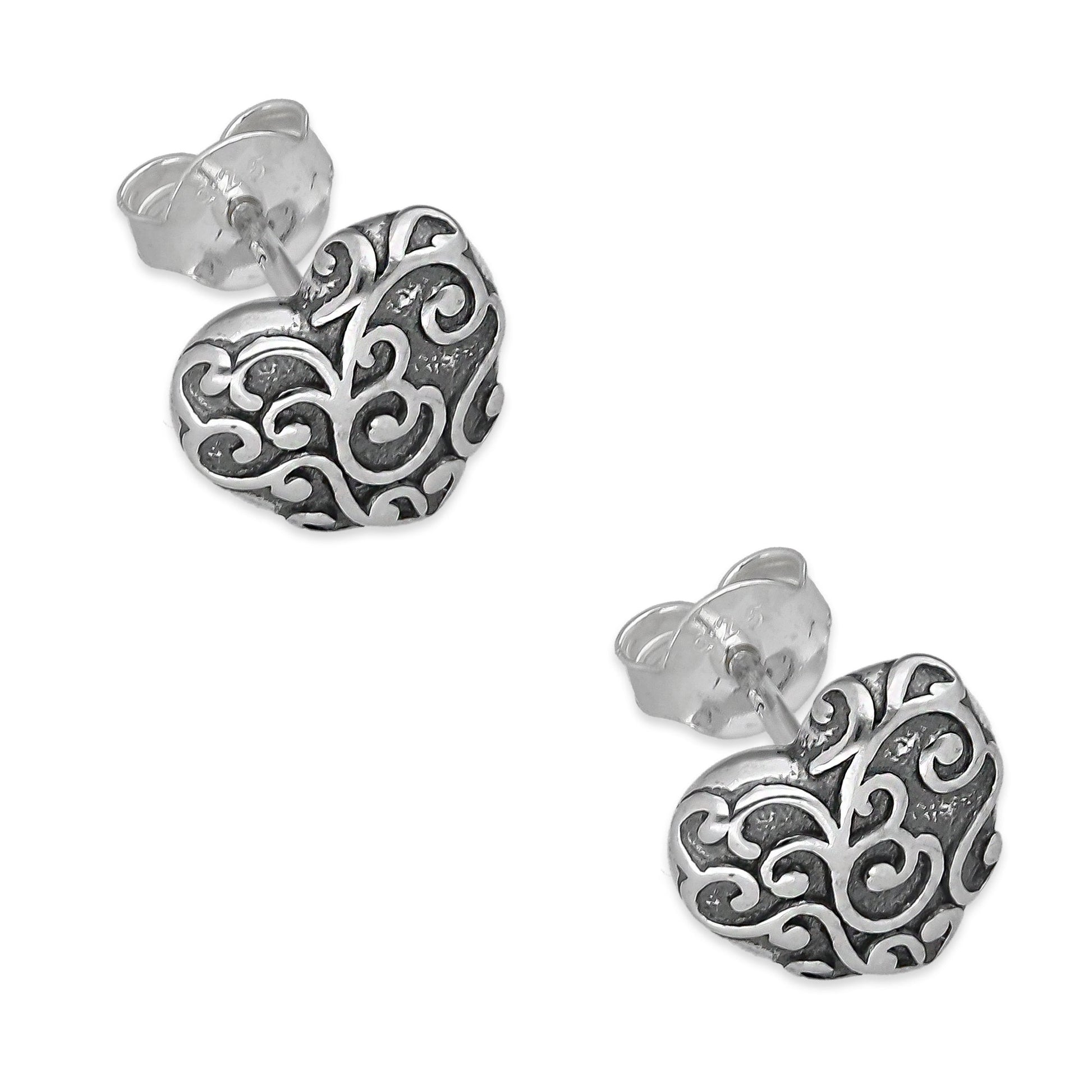 LPAP141 Arete Broquel Corazón Bombeado Ornamentado en Plata .925 Taxco