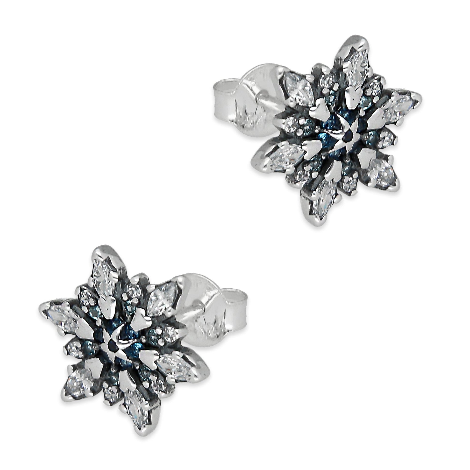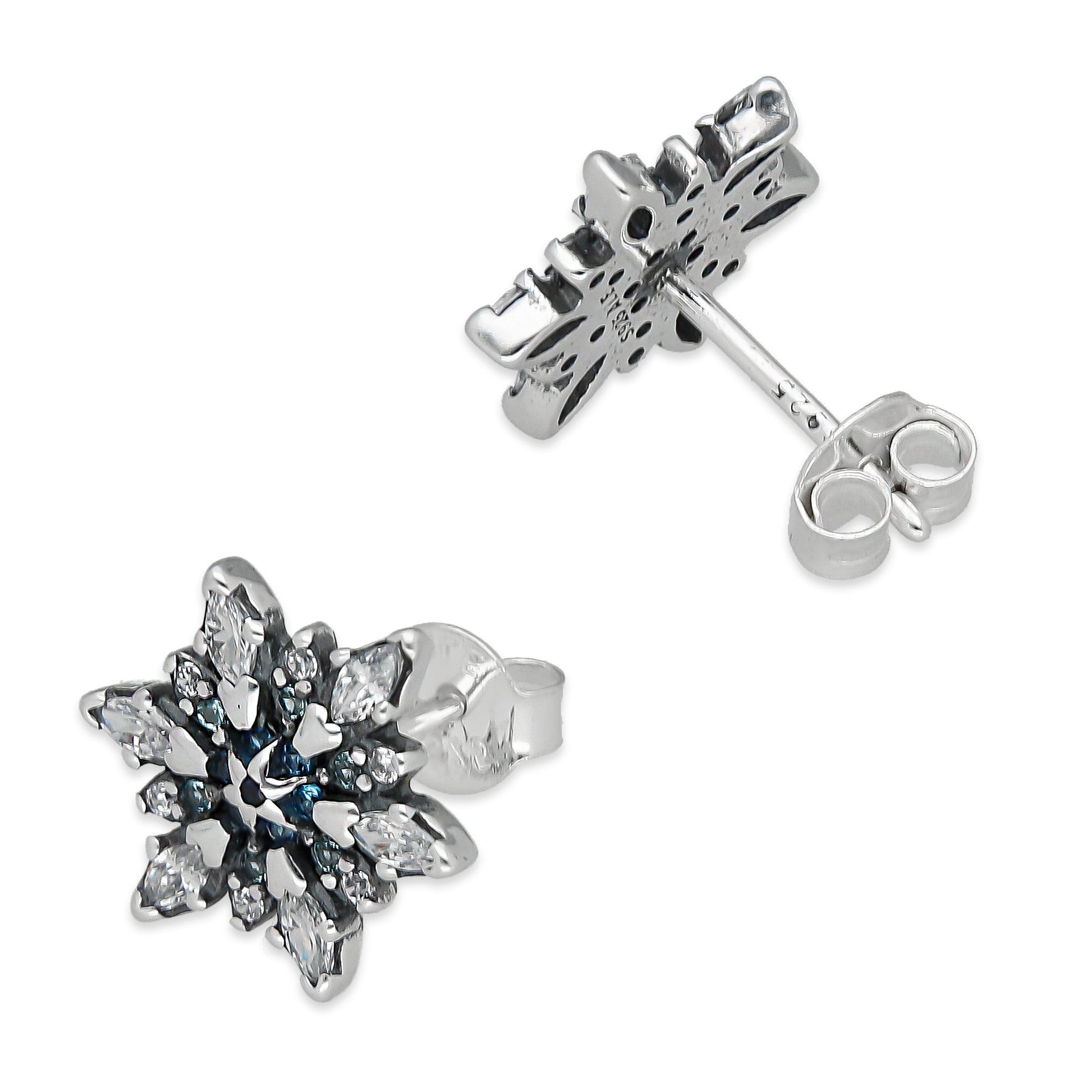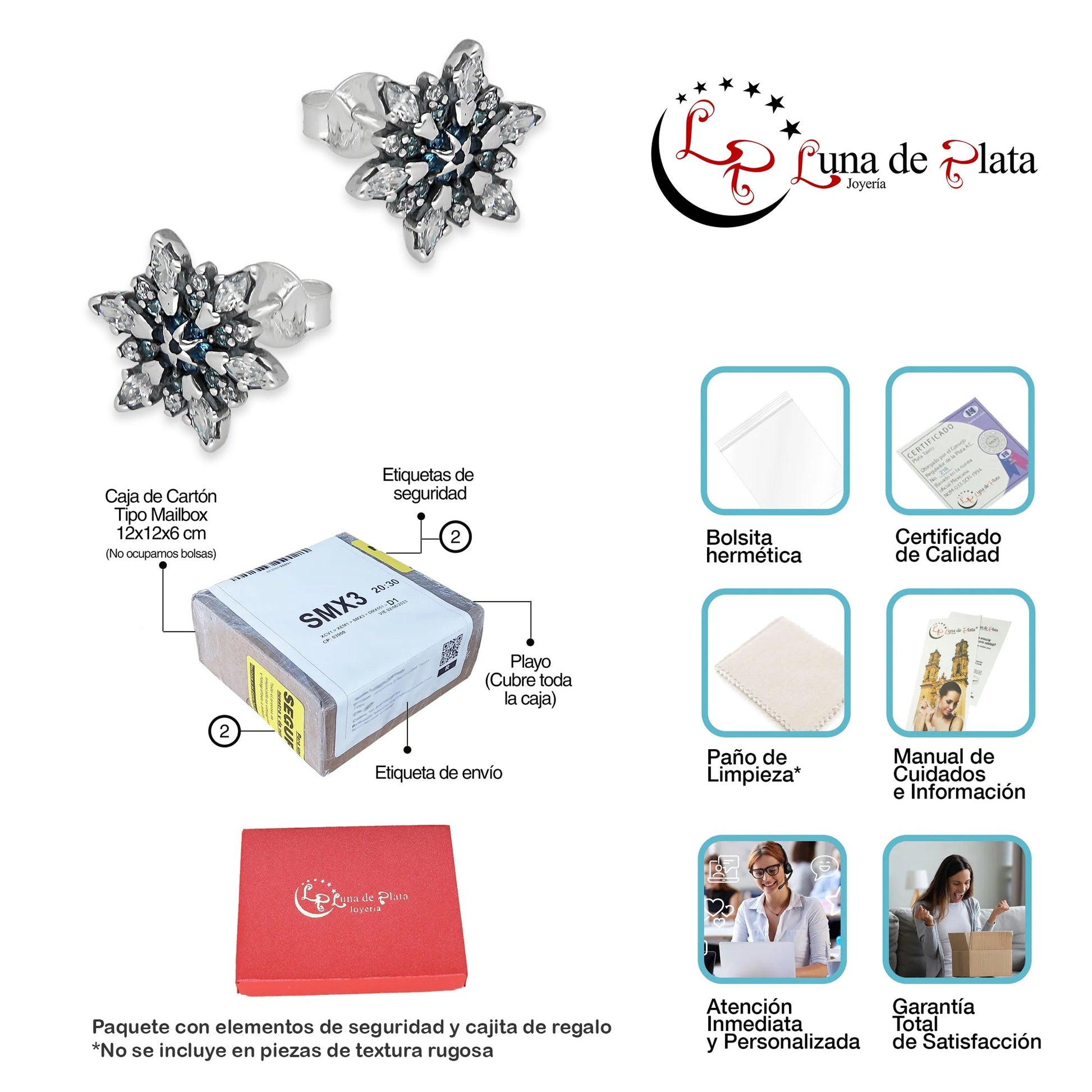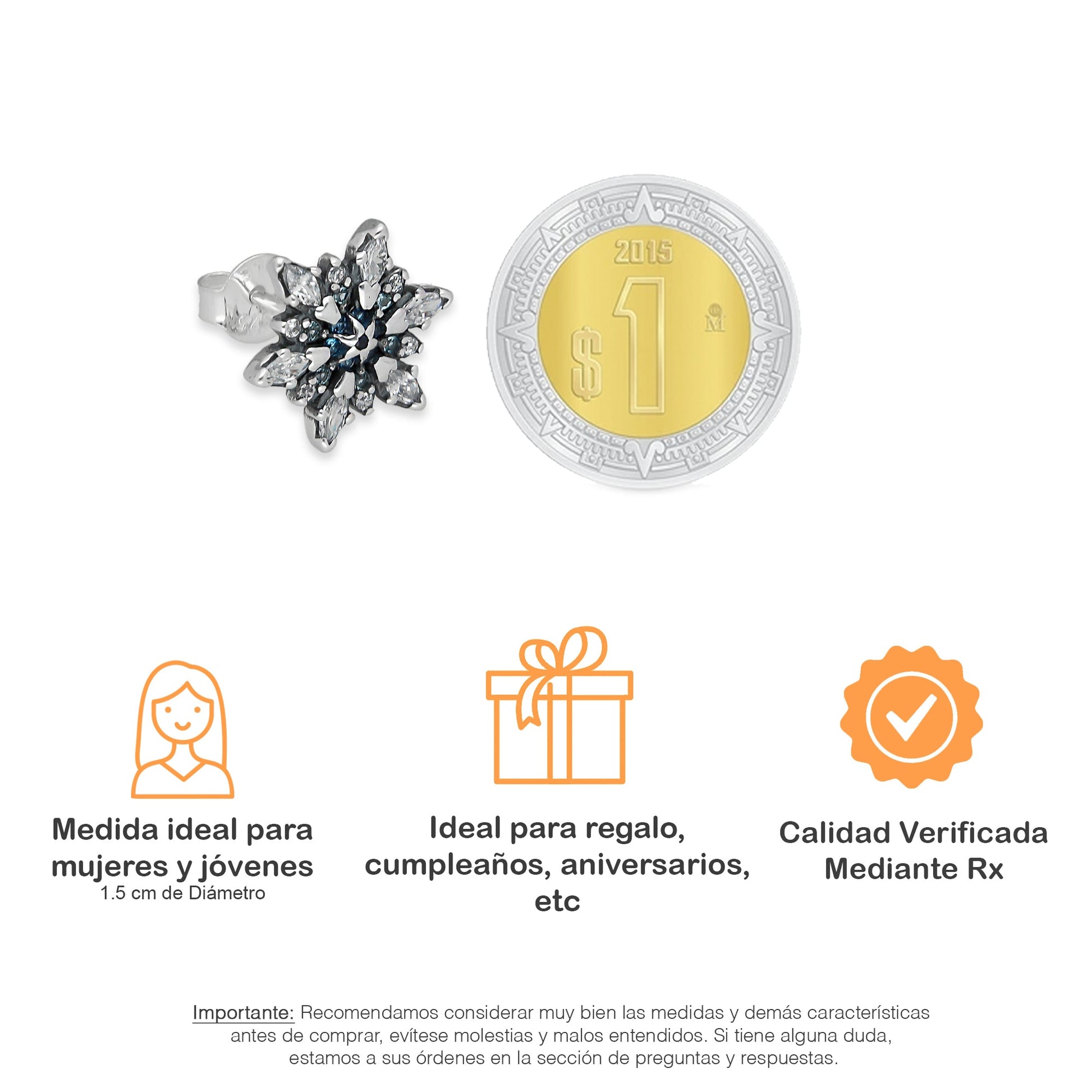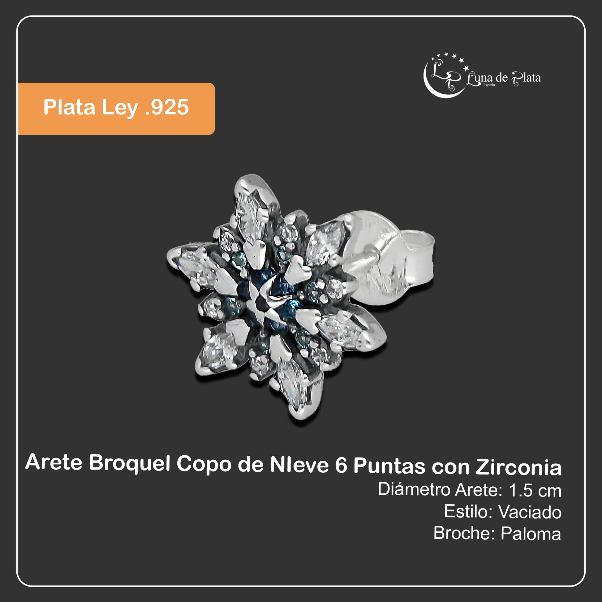 LPAP143 Arete Broquel Copo de NIeve 6 Puntas con Zirconia en Plata .925 Taxco