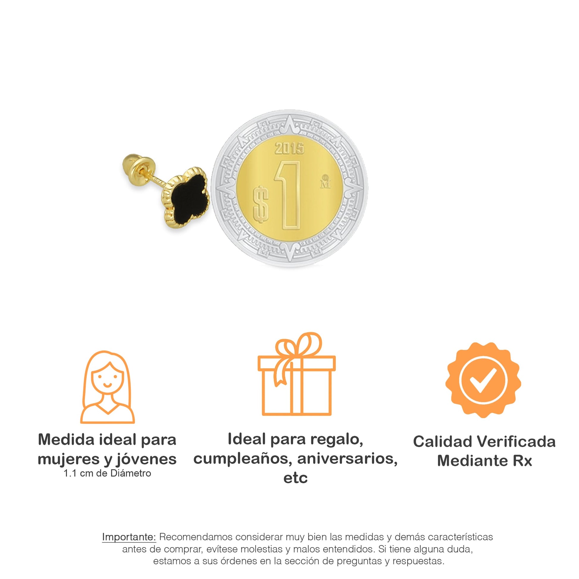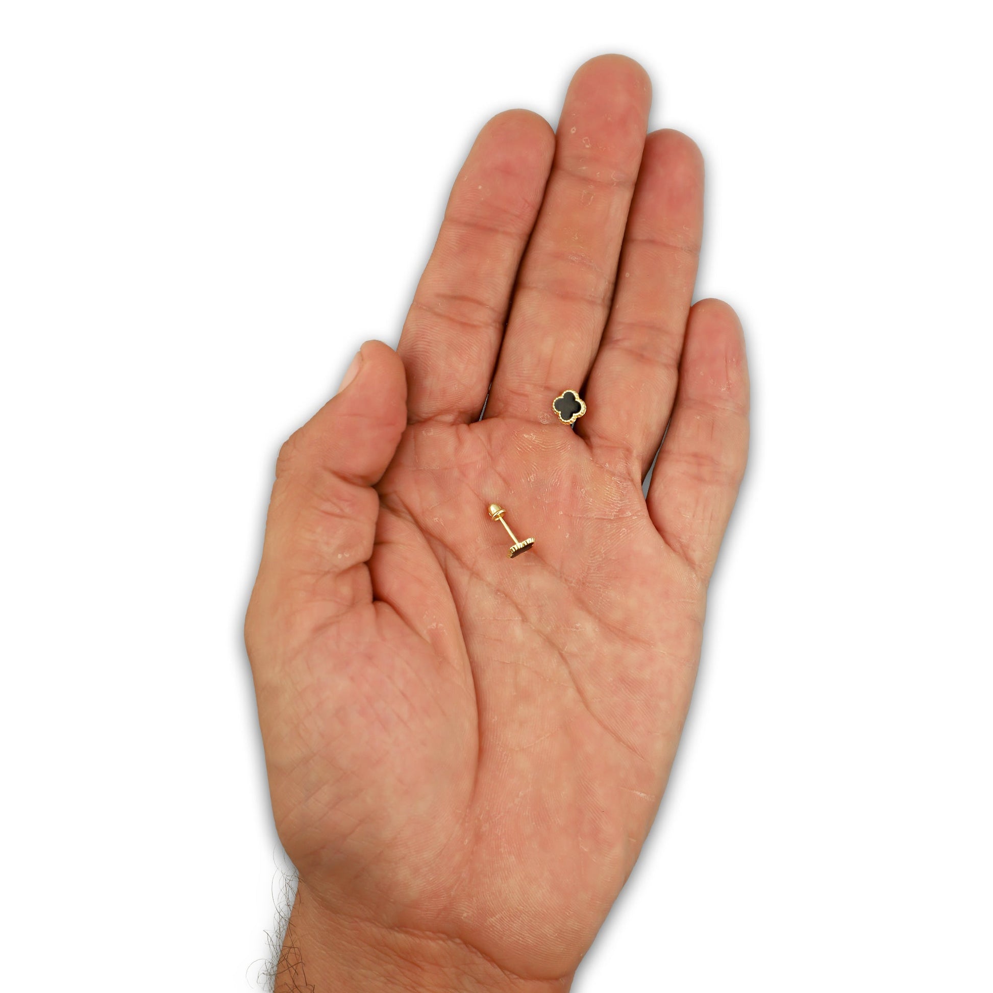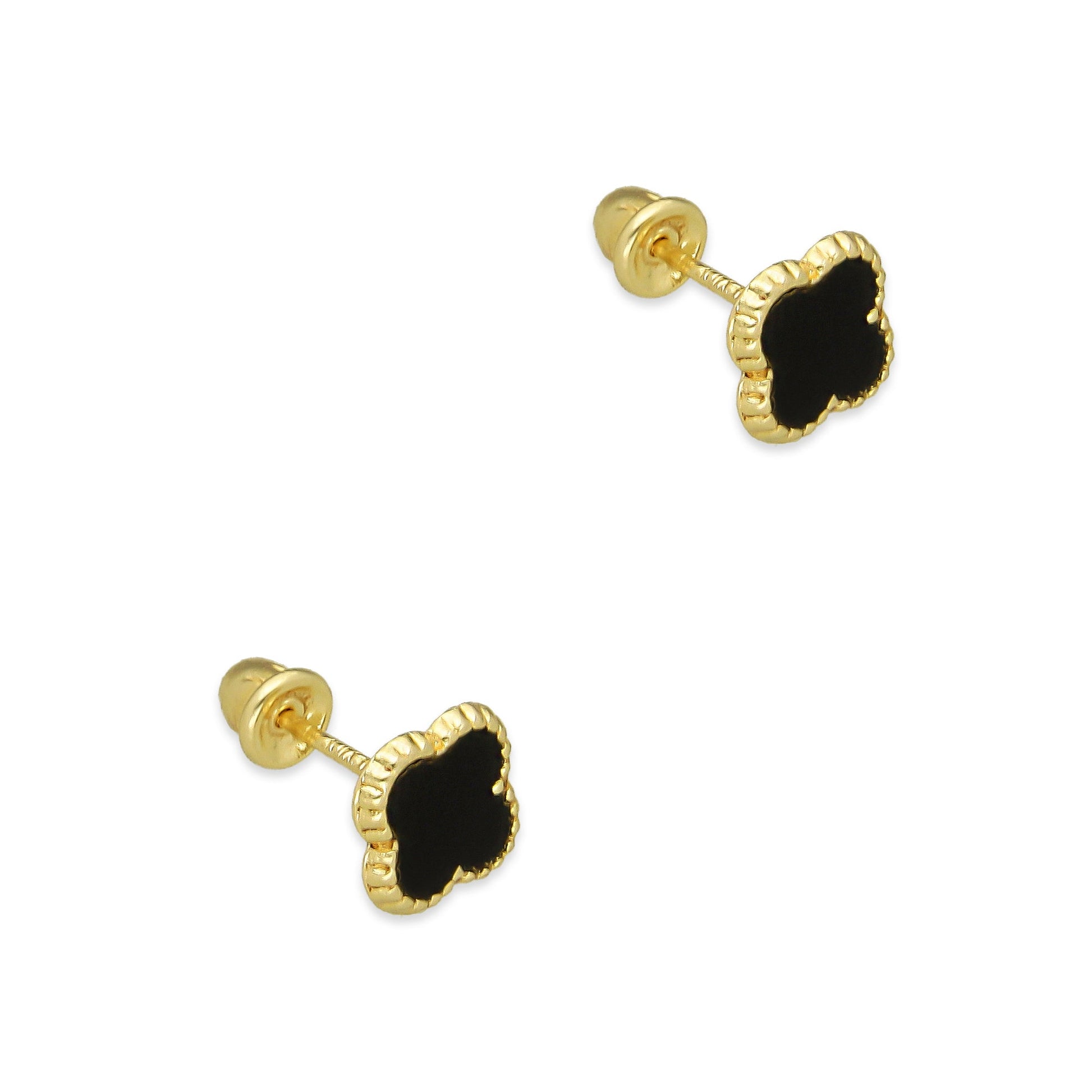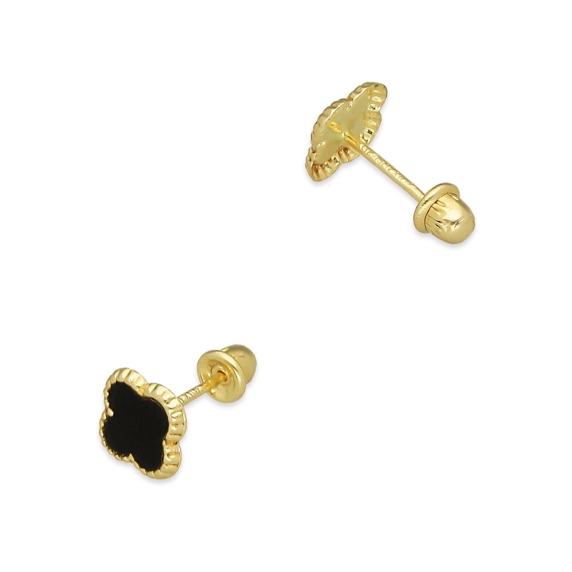 LPAUBR100 Aretes Broquel Oro Sólido 10K Trébol Esmalte Negro 6 mm de Diámetro 776