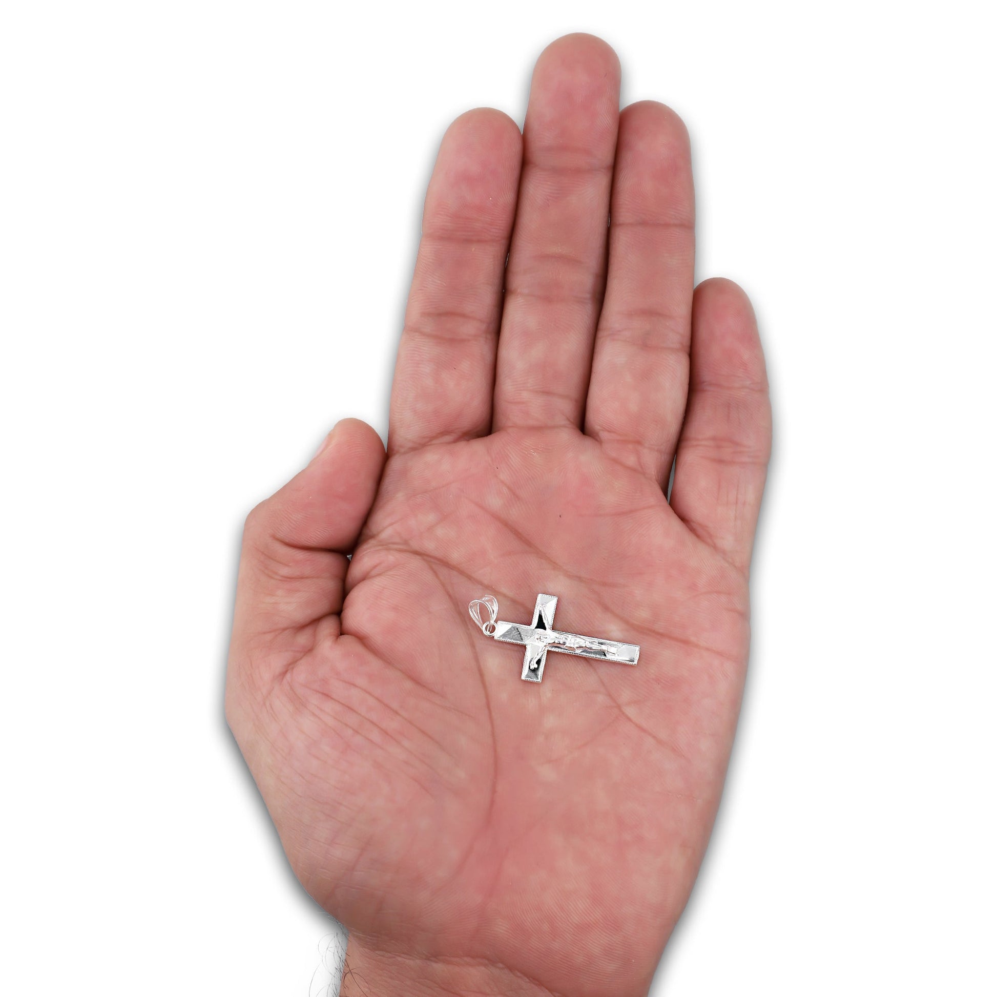 :: Dije Crucifijo Mosaico Facetado 1.6 cm x 3.3 cm en Plata .925