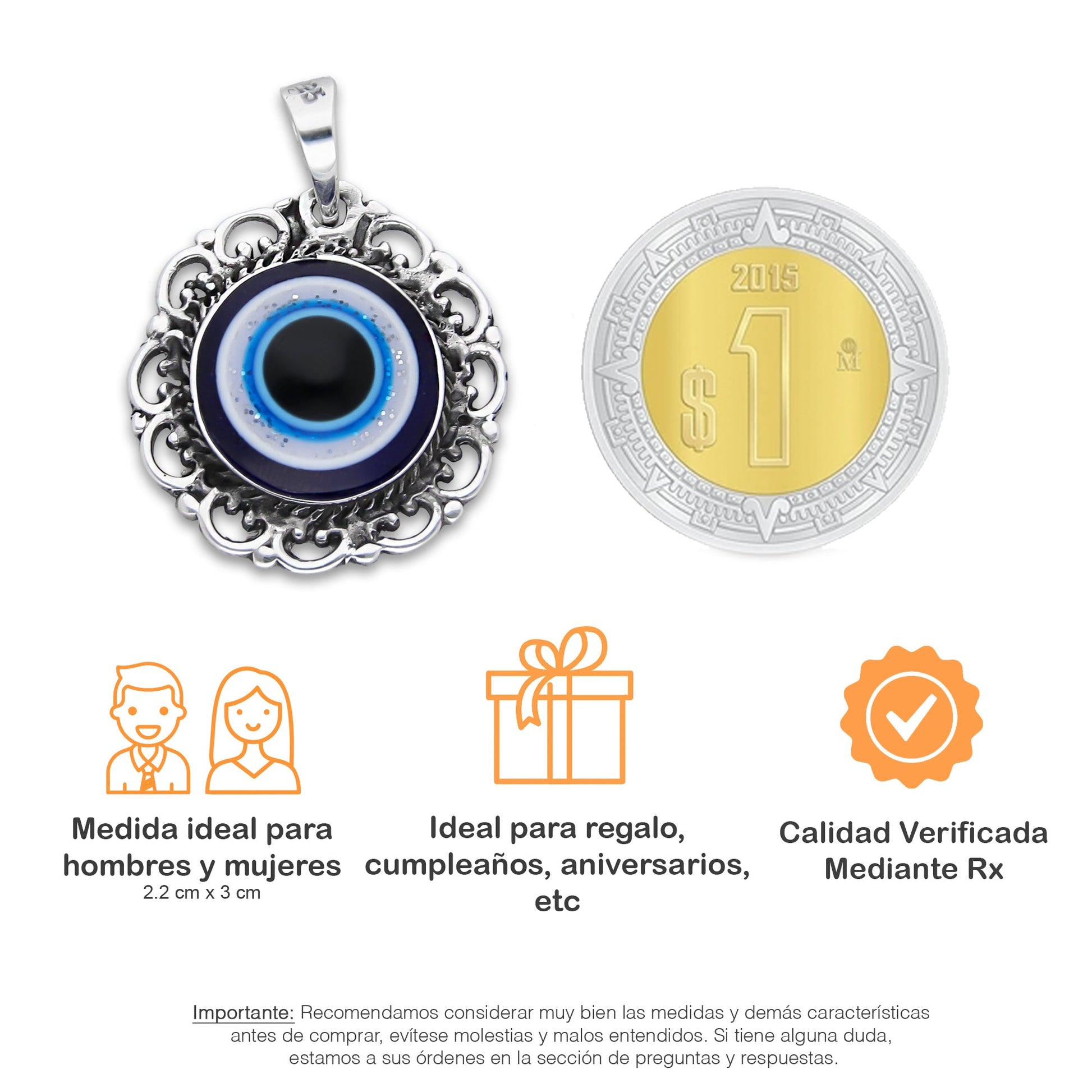 :: Dije Ojo Turco Grande Olan 2.2 cm x 3 cm en Plata .925