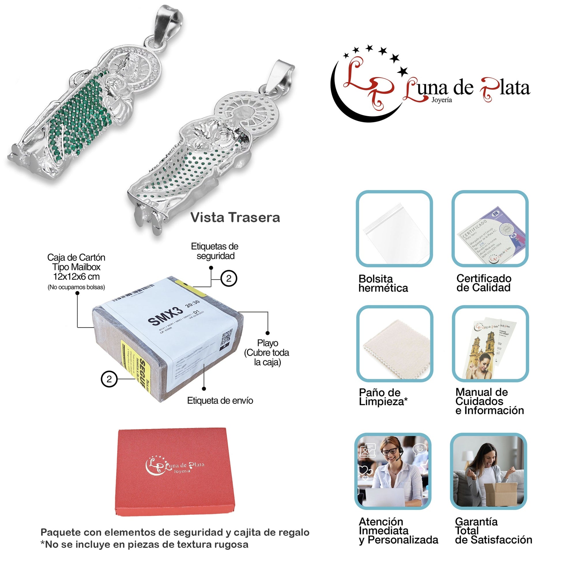 - Metal: Plata de Ley .925 (Certificado #216 CRPT)