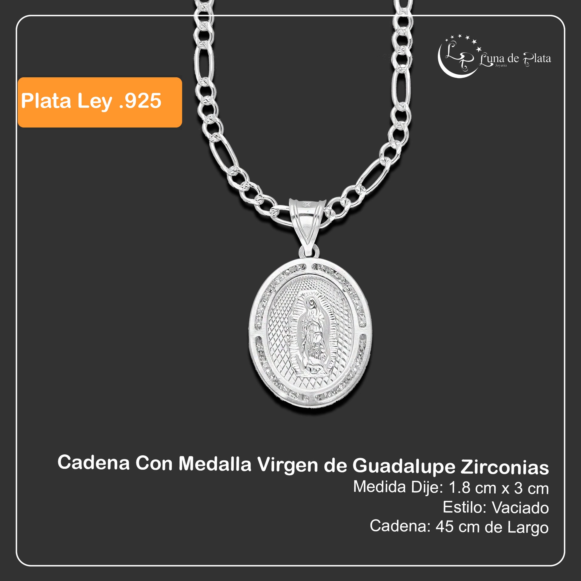 LPDP102 Cadena Con Medalla Virgen de Guadalupe Zirc En Plata .925 2637959200