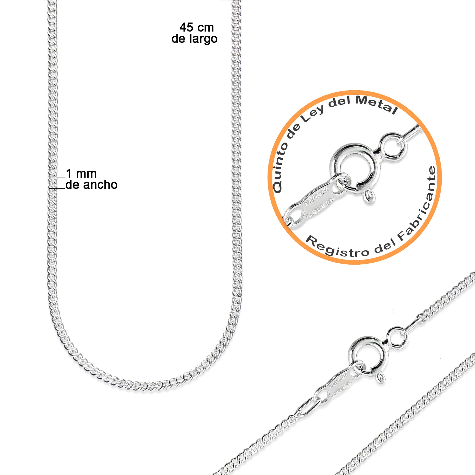 - Cadena: 45 cm de largo x 1 mm de ancho