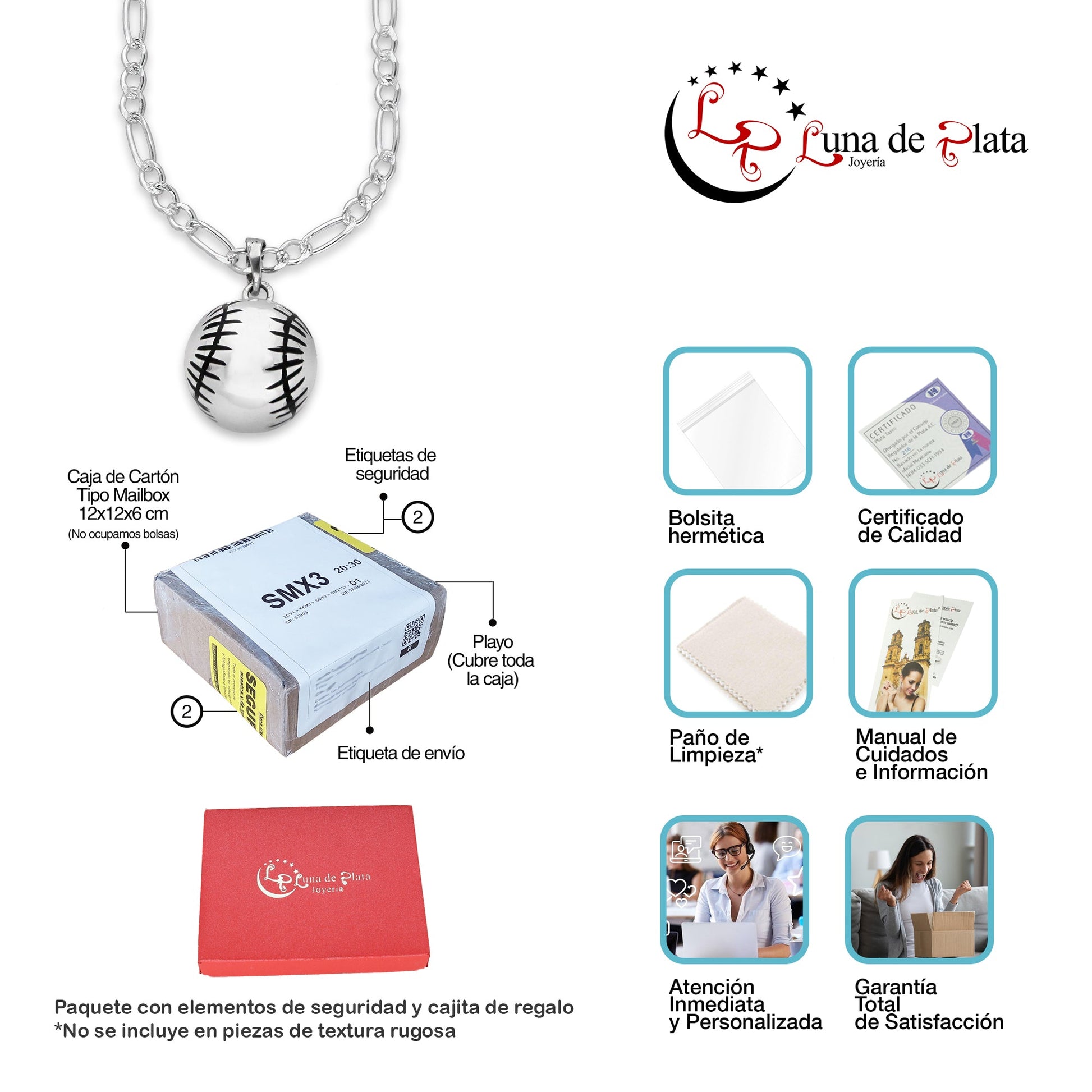 LPDP127 Dije Pelota Beisbol + Cadena 60 en Plata .925 Taxco Gro 2591105095