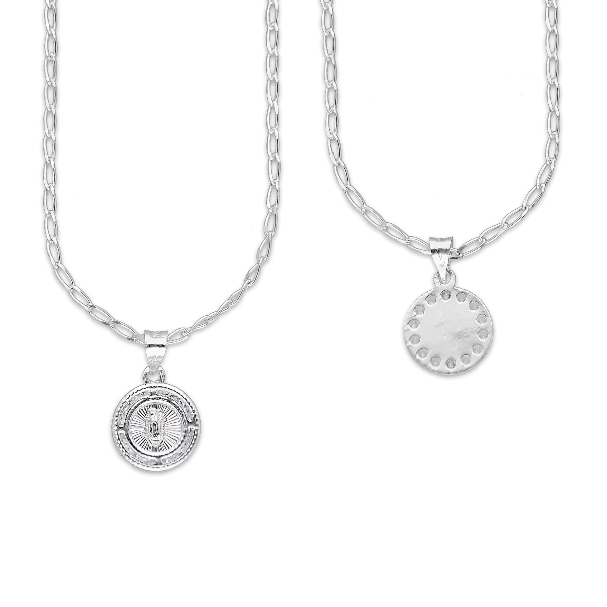 :: Cadena + Dije Medalla Virgen Redonda Micro en Plata .925