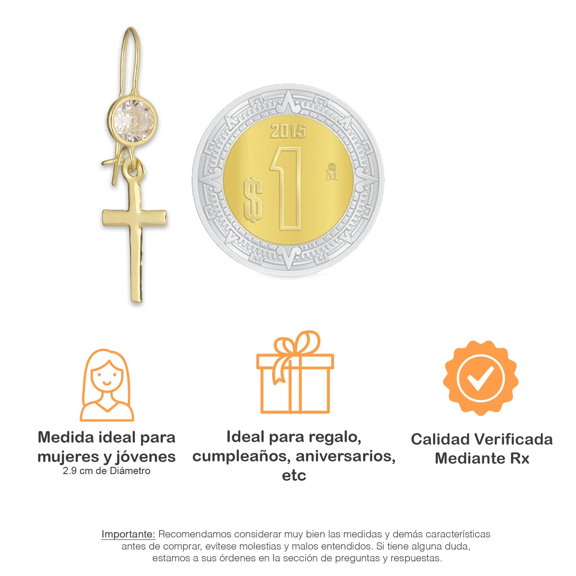 LPEAR001 Arete Arillo Oro Sólido 10K Modelo Cruz Colgante con Zirconia Blanca 2530958513