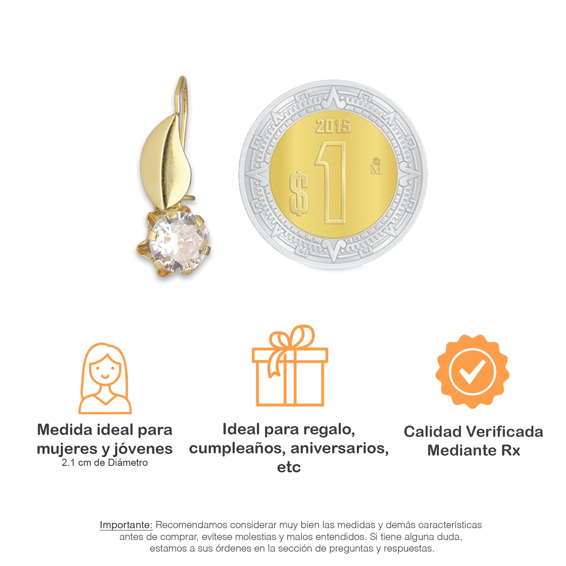 LPEAR011 Arete Arillo Oro Sólido 10K Modelo Hojita Lisa con Zirconia Blanca Redonda Colgante 2531152145