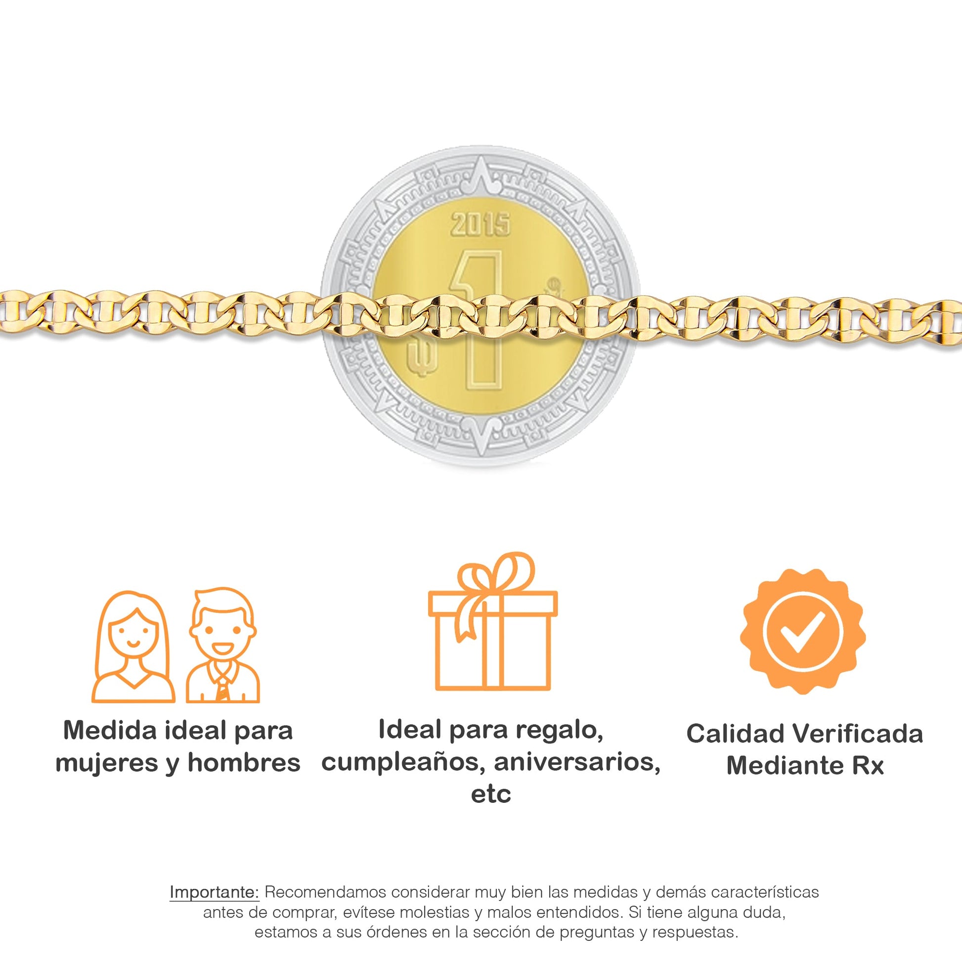 LPECU005-55 Cadena Oro Sólido 10K Mod Ancla Lisa 3 mm x 55 cm