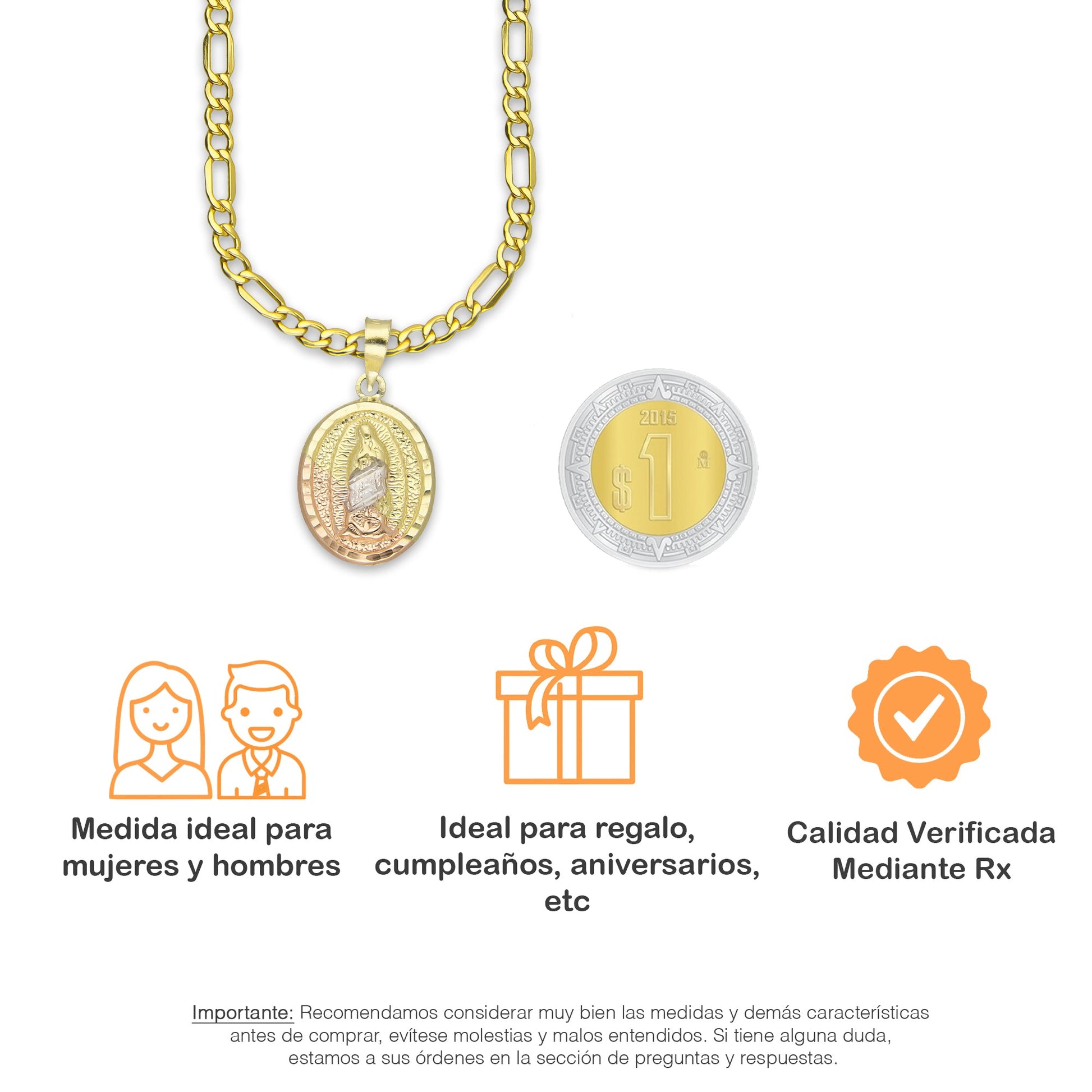 LPEDP002 Cadena Oro Sólido 10K + Dije Medalla Oval Troquelada Oro Sólido 14K Florentino Virgen de Guadalupe 1.3 cm x 2.4 cm 2533033781