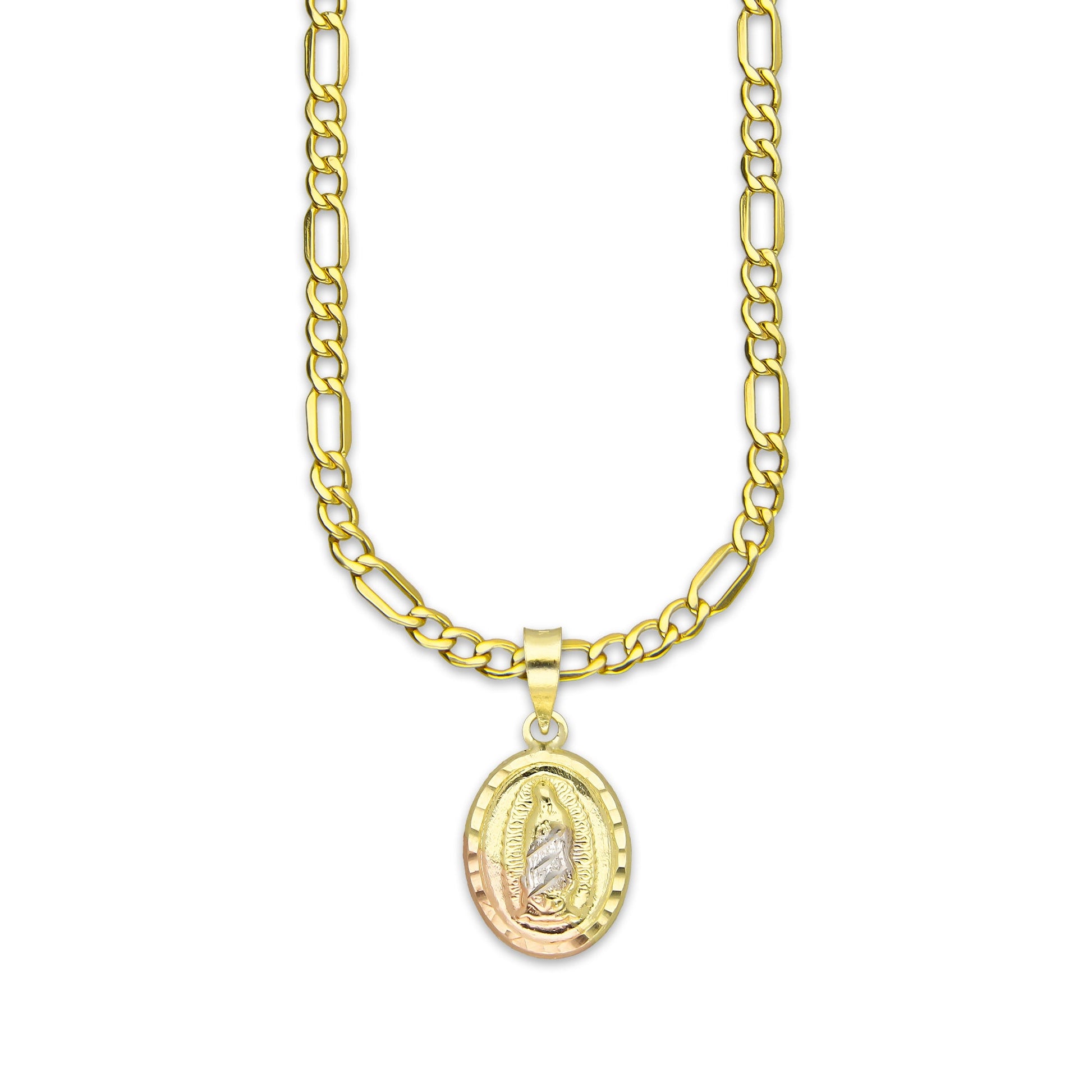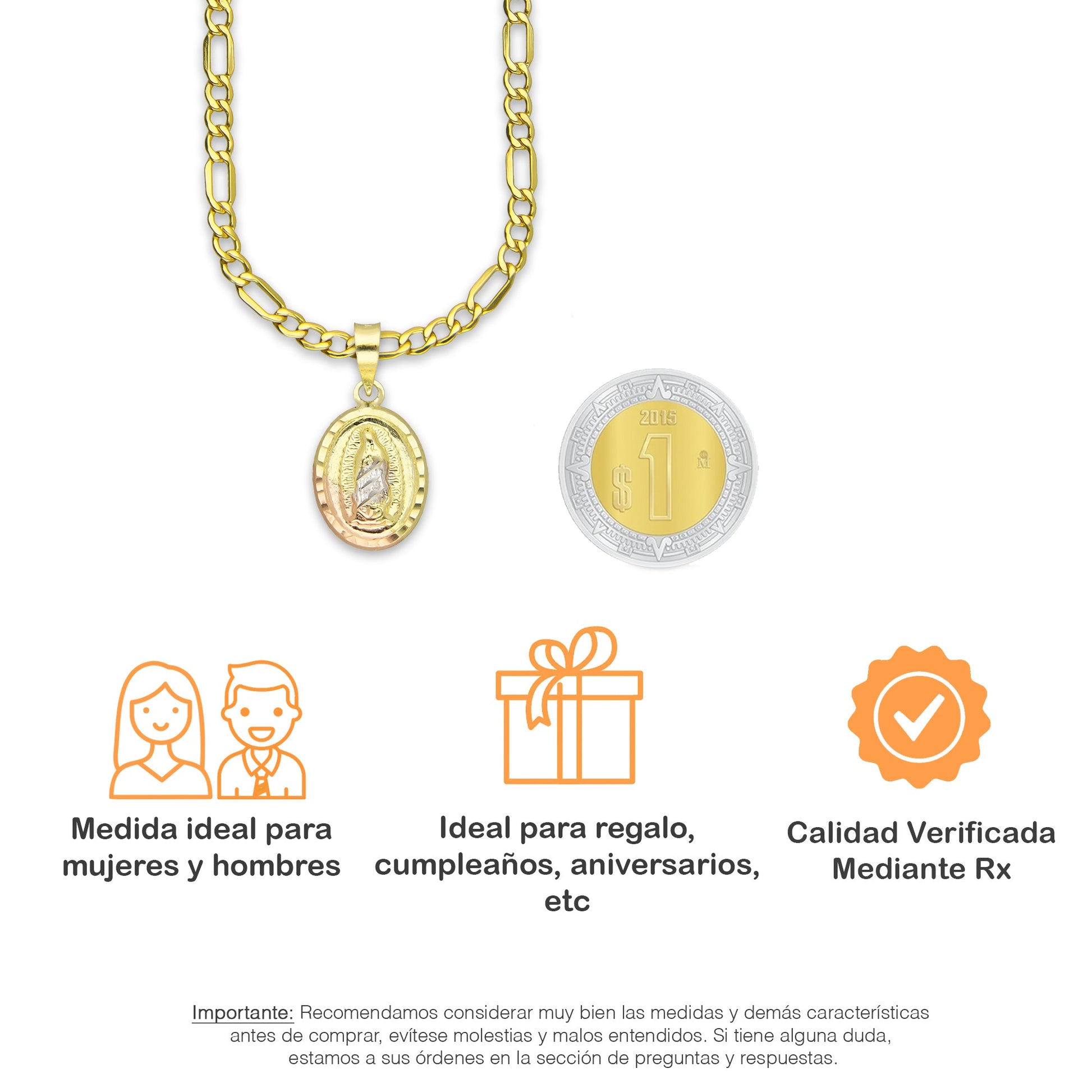 LPEDP003 Cadena Oro Sólido 10K + Dije Medalla Oval Troquelada Oro Sólido 14K Florentino Virgen de Guadalupe 1.1 cm x 2.2 cm 4293542958