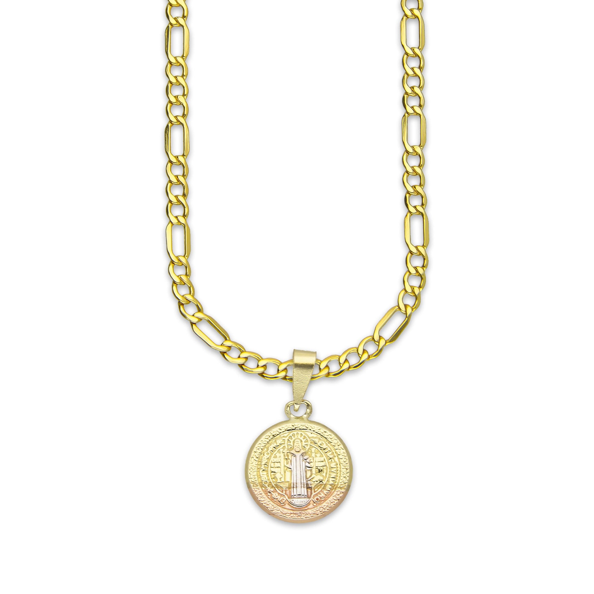 LPEDP006 Cadena Oro Sólido 10K + Dije Medalla Redonda Troquelada Oro Sólido 14K Florentino San Benito 1.1 cm x 1.9 cm 2533033783