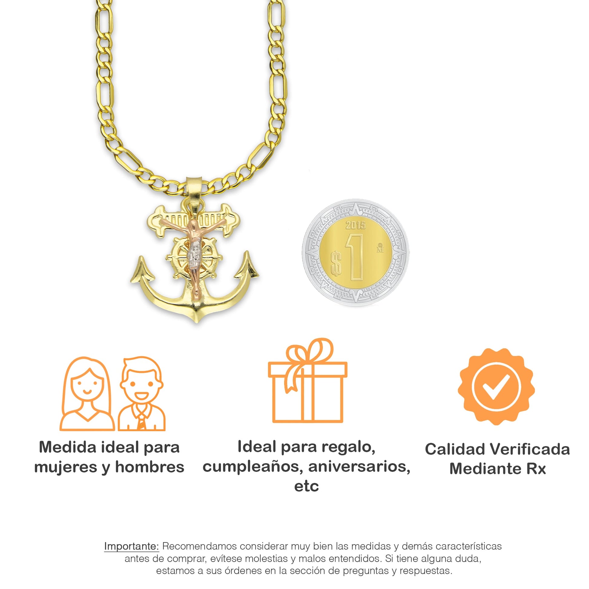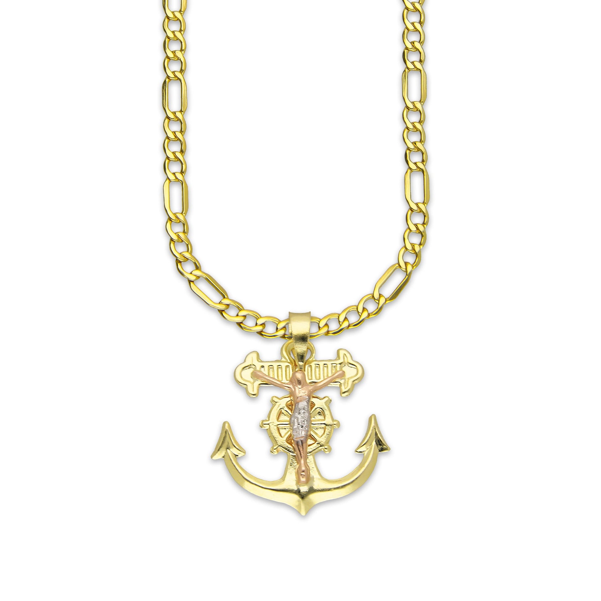 LPEDP010 Cadena Oro Sólido 10K + Dije Troquelado Oro Sólido 14K Florentino Crucifijo Ancla con Cristo 2 cm x 2.5 cm 4293711206