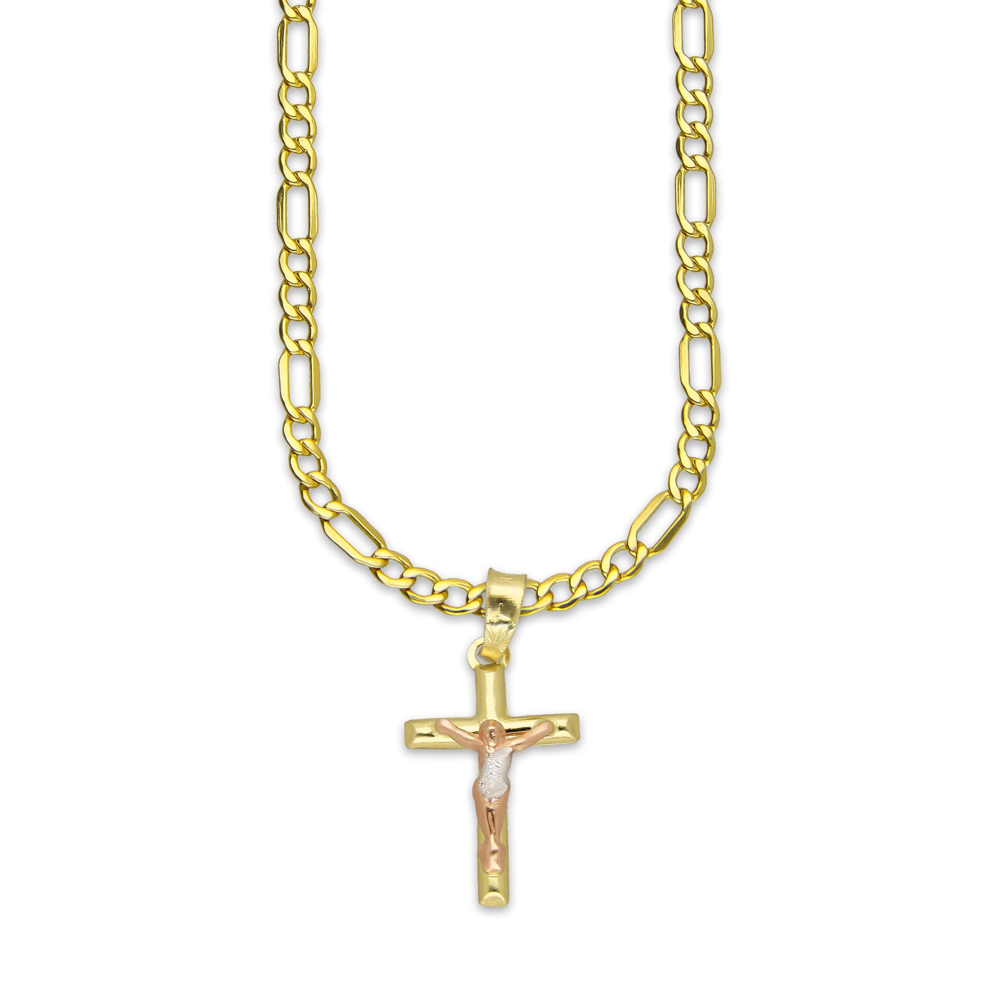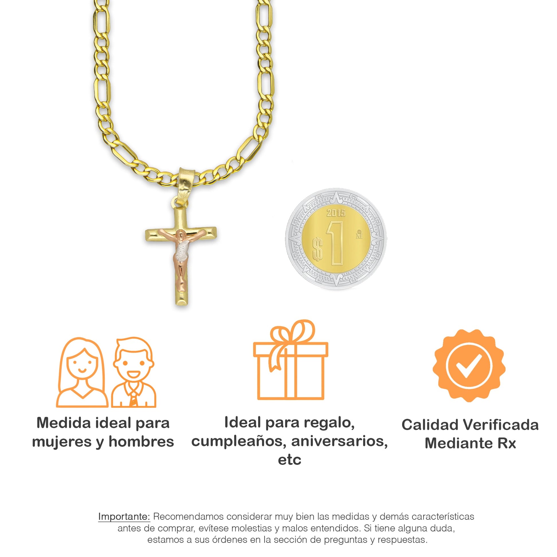 LPEDP011 Cadena Oro Sólido 10K + Dije Troquelado Oro Sólido 14K Florentino Crucifijo Cruz Media Caña con Cristo 1.2 cm x 2.5 cm 4293685406