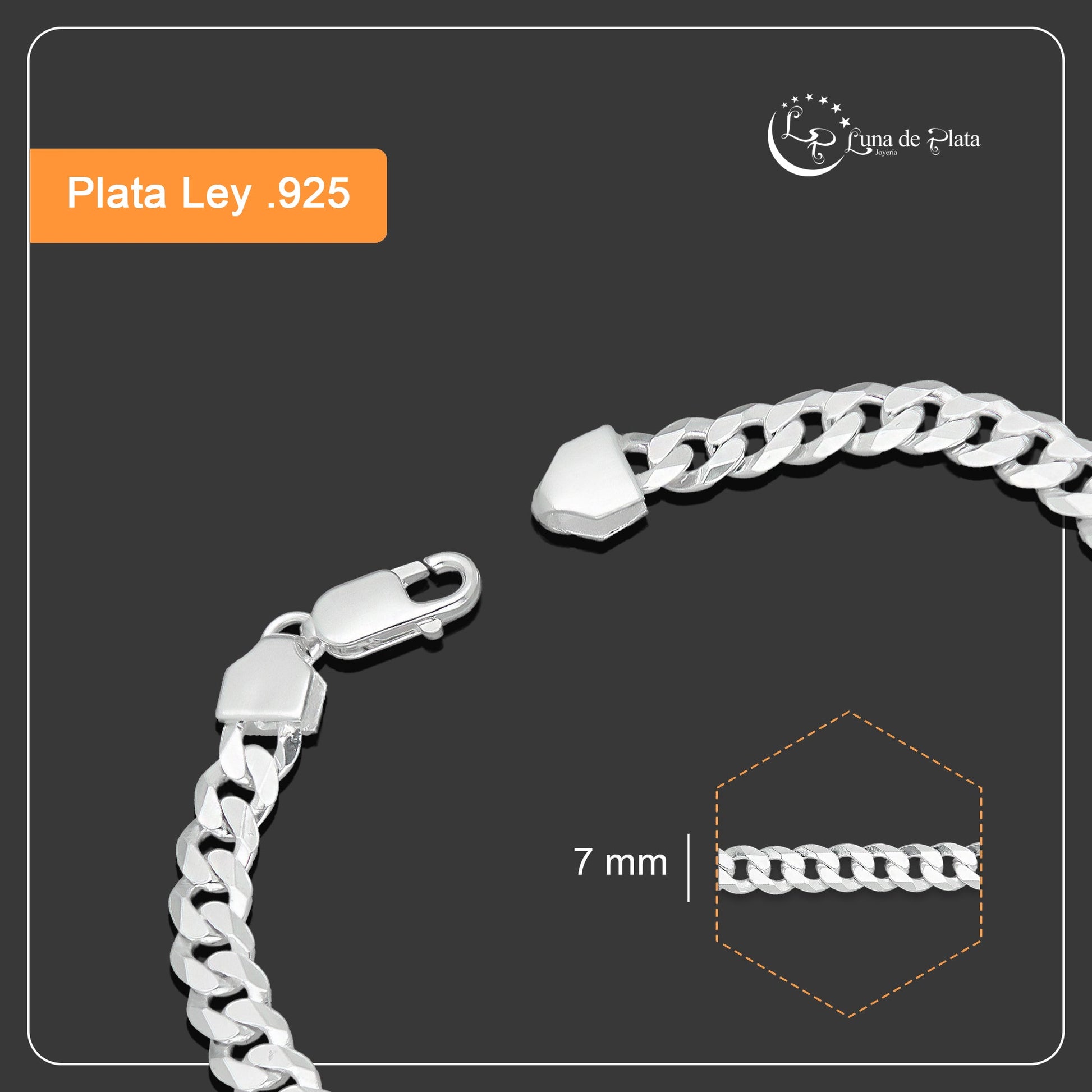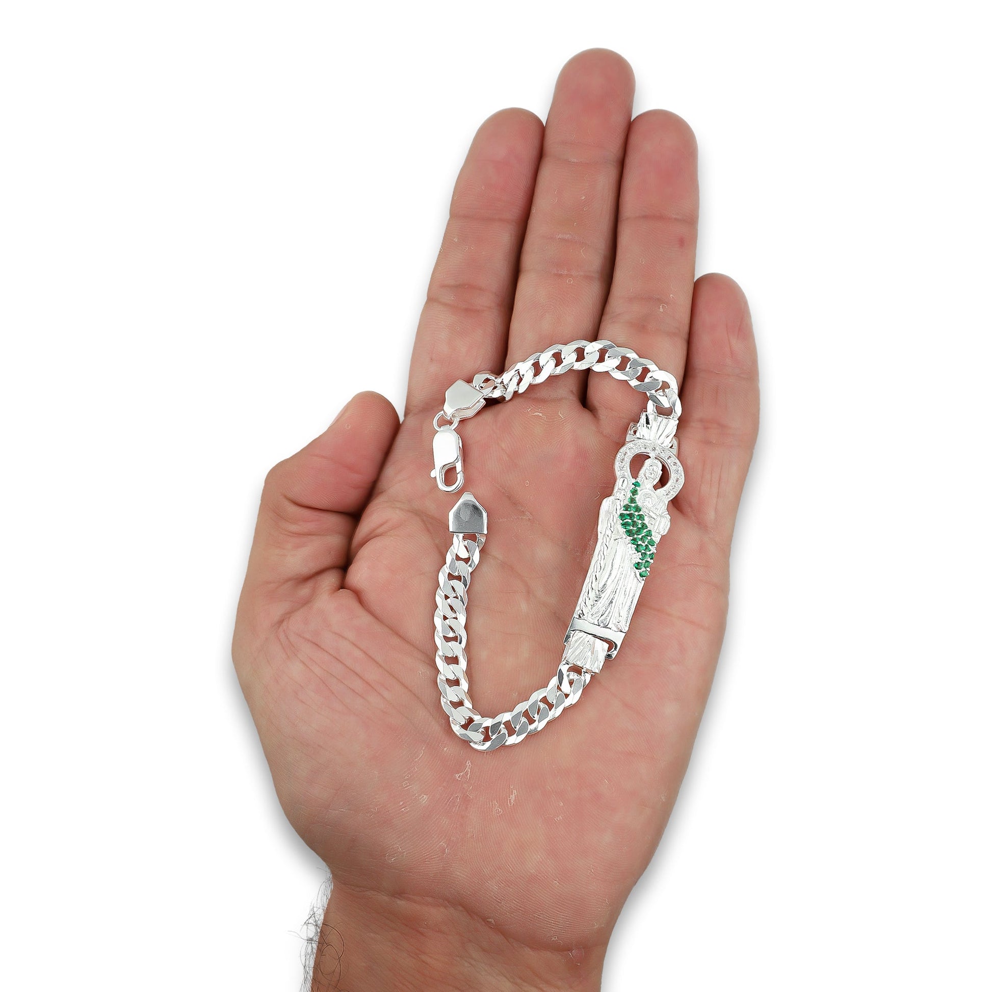 LPPC087-21 Pulsera Esclava San Judas Con Eslabones Cubano Americano 7 mm x 21 cm en Plata .925
