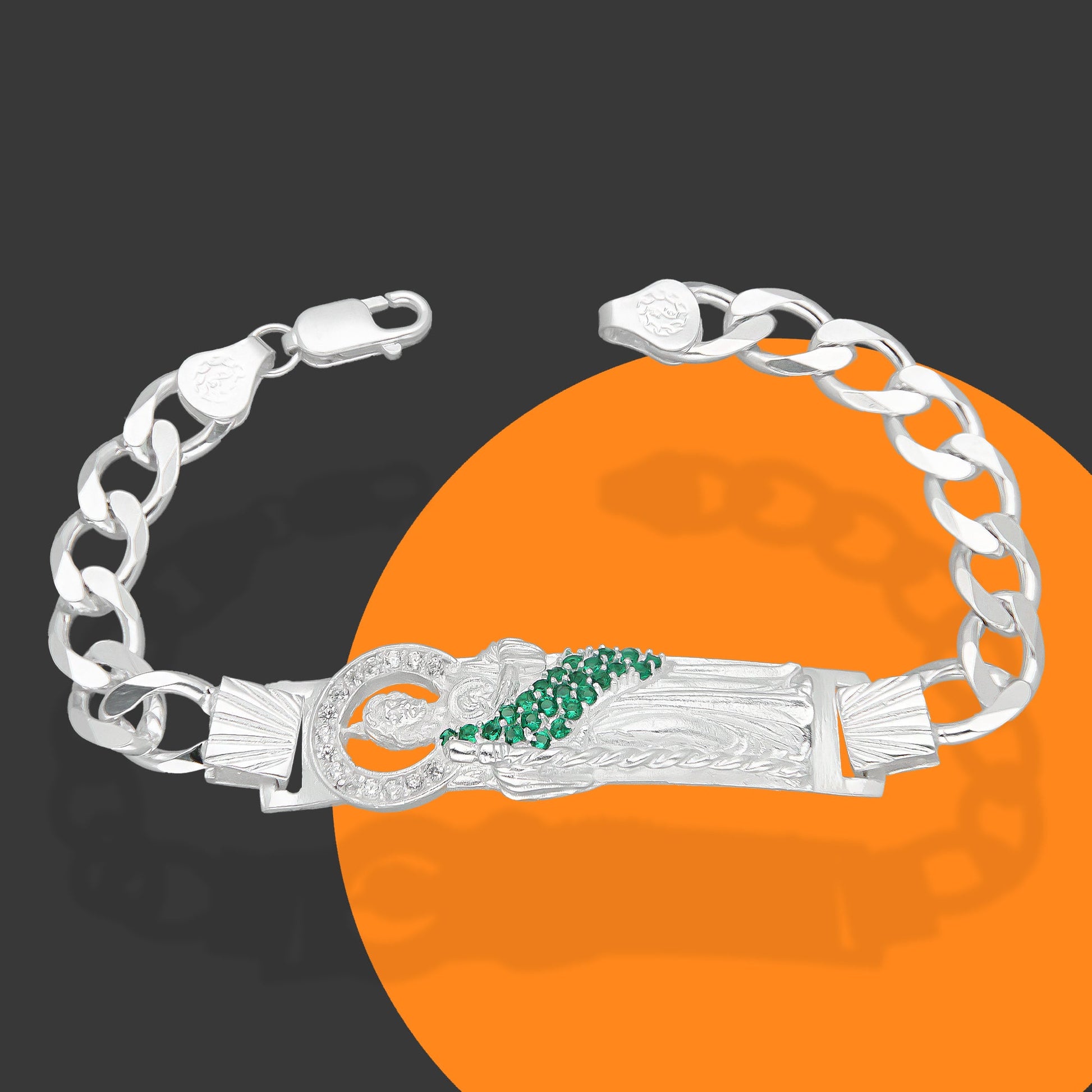LPPC088-20 Pulsera Esclava San Judas Con Eslabones Cubano Americano 9 mm x 20 cm en Plata .925