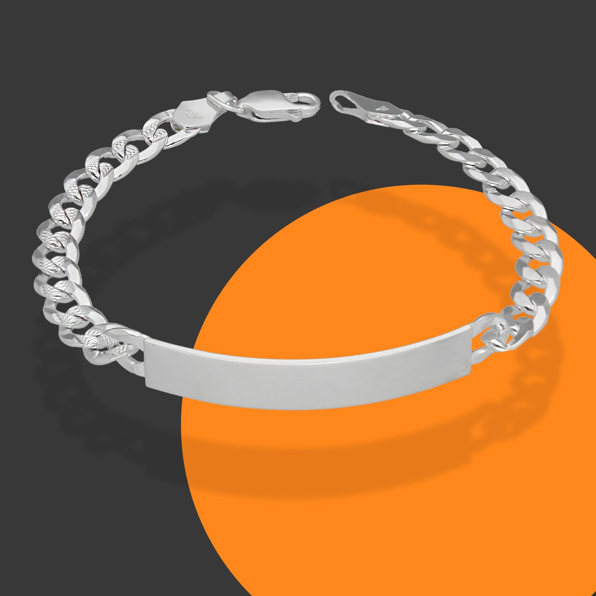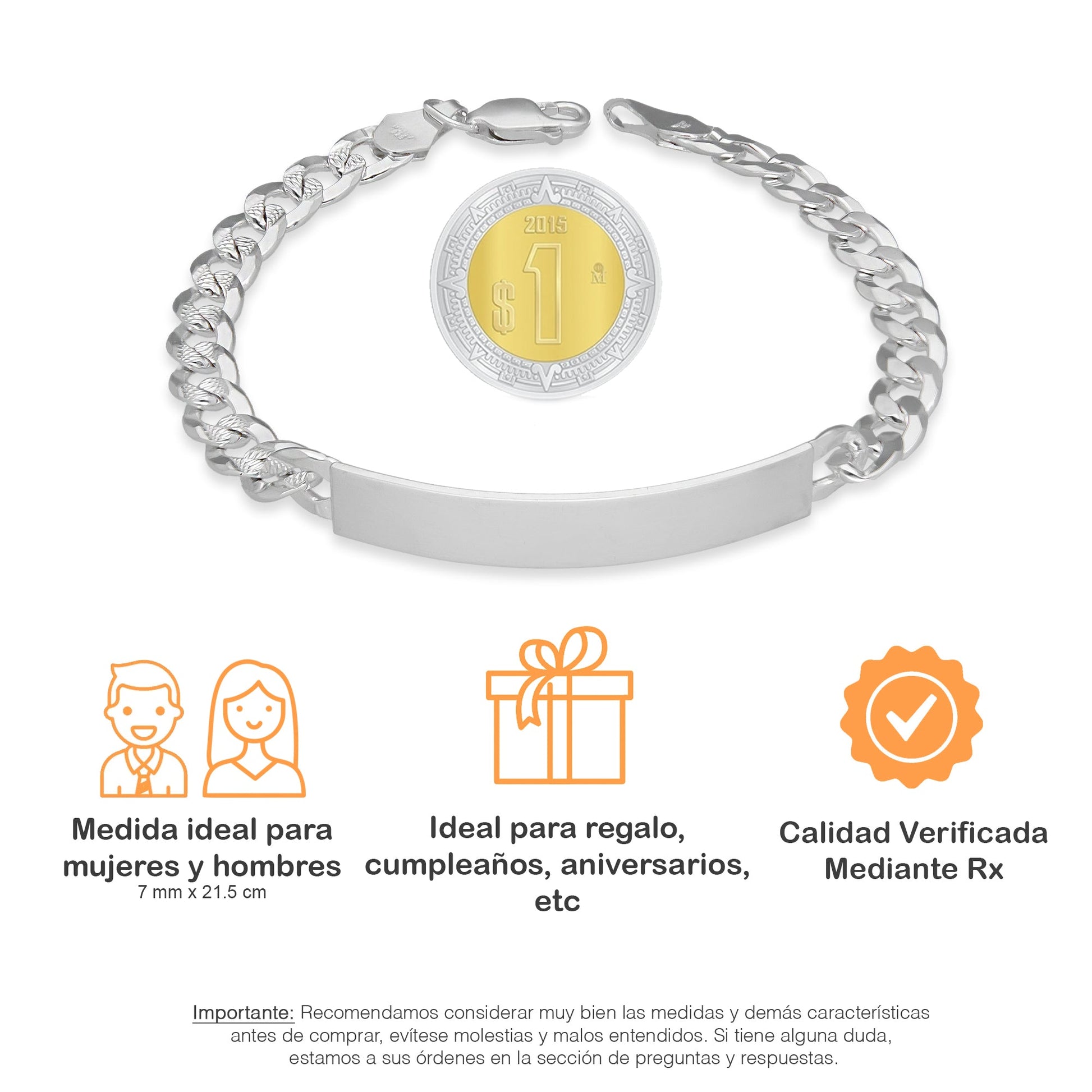 LPPC096 Pulsera Esclava Cubana Americana Diamantada 7 mm x 21.5 cm en Plata .925