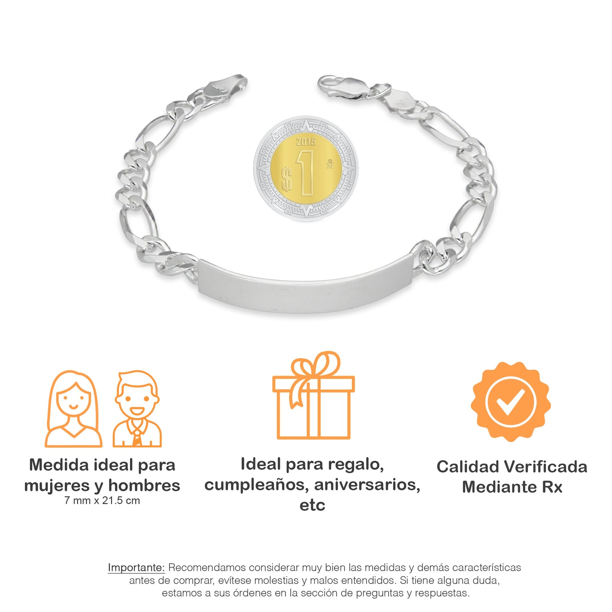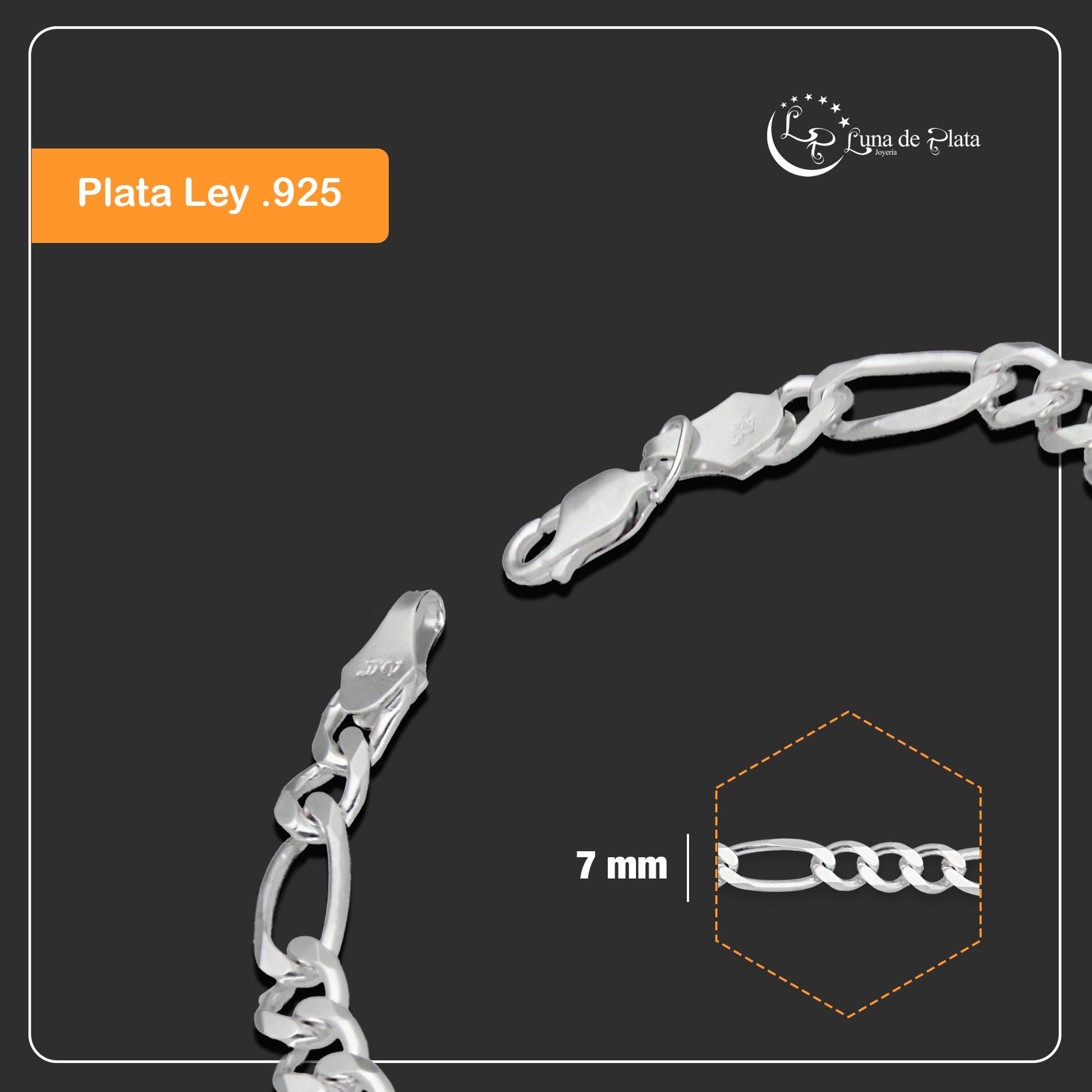 LPPC102 Pulsera Esclava Fígaro 3*1 Lisa 7 mm x 21.5 cm en Plata .925