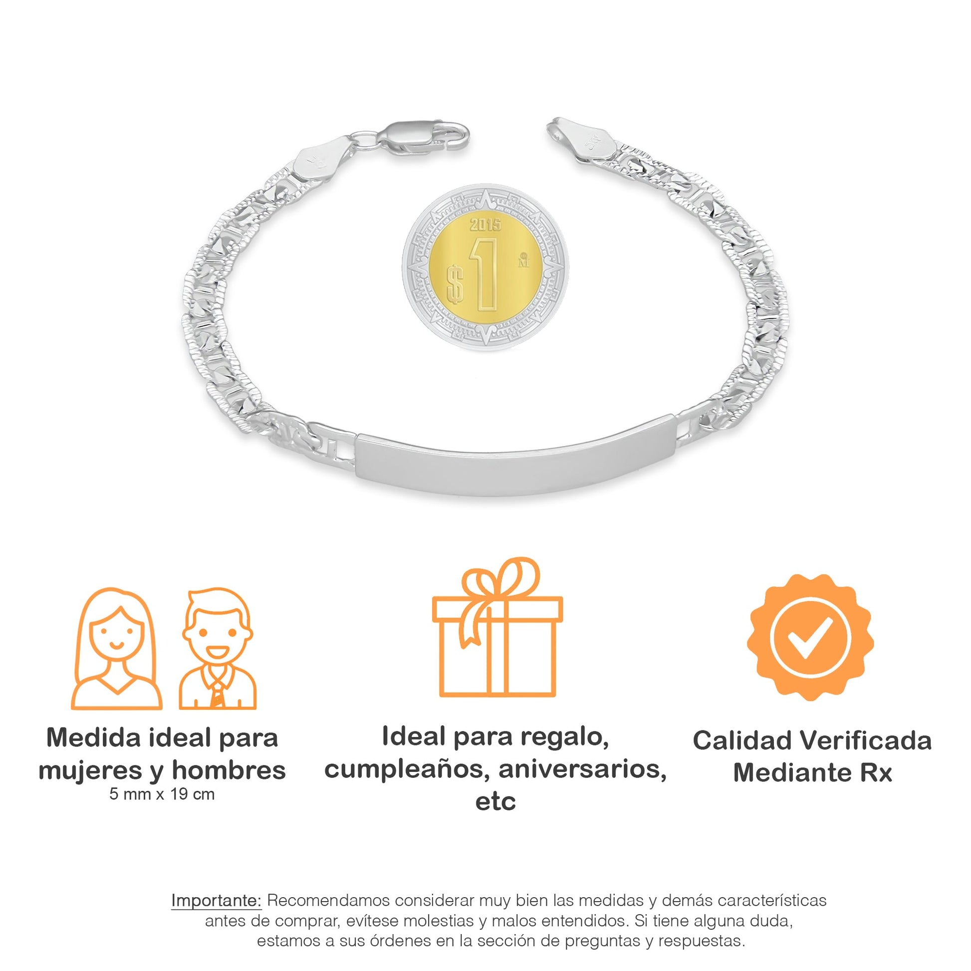 LPPC104 Pulsera Esclava Gusi Diamantada Text 5 mm x 19 cm en Plata .925