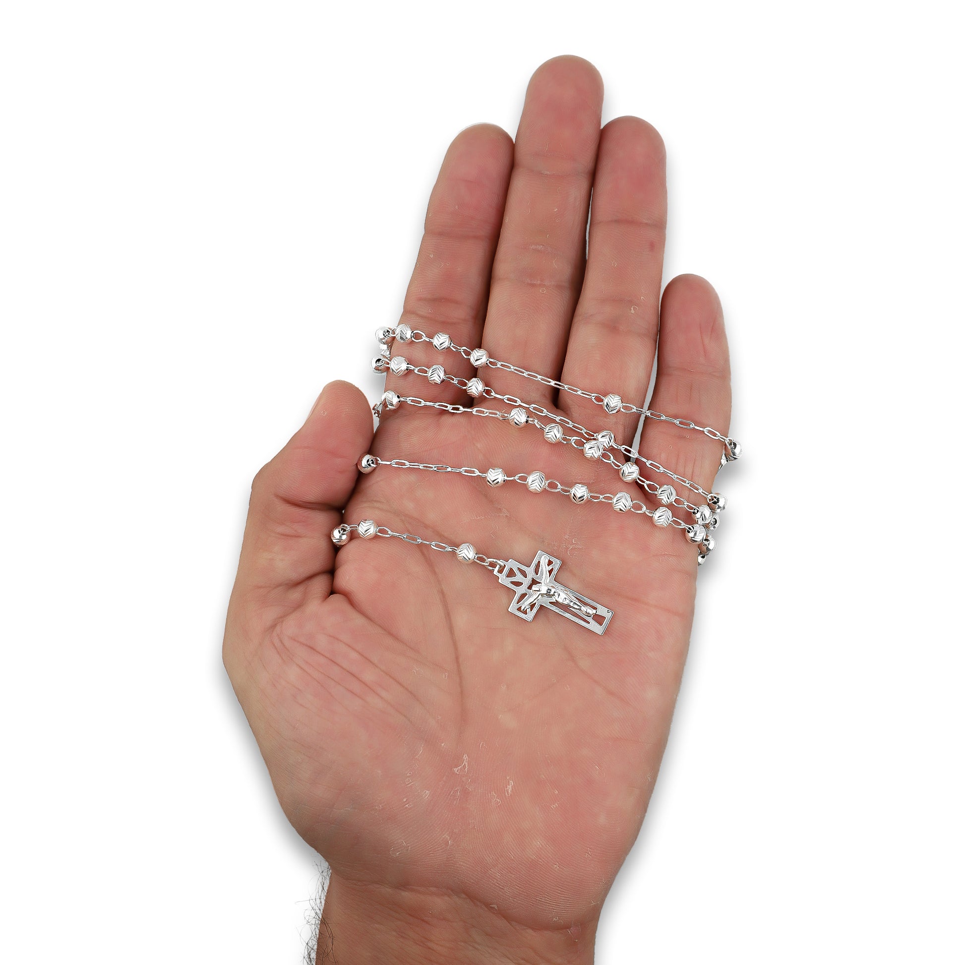 LPR010 Rosario Bola diamantada de 4 mm x 70 cm de largo en Plata .925