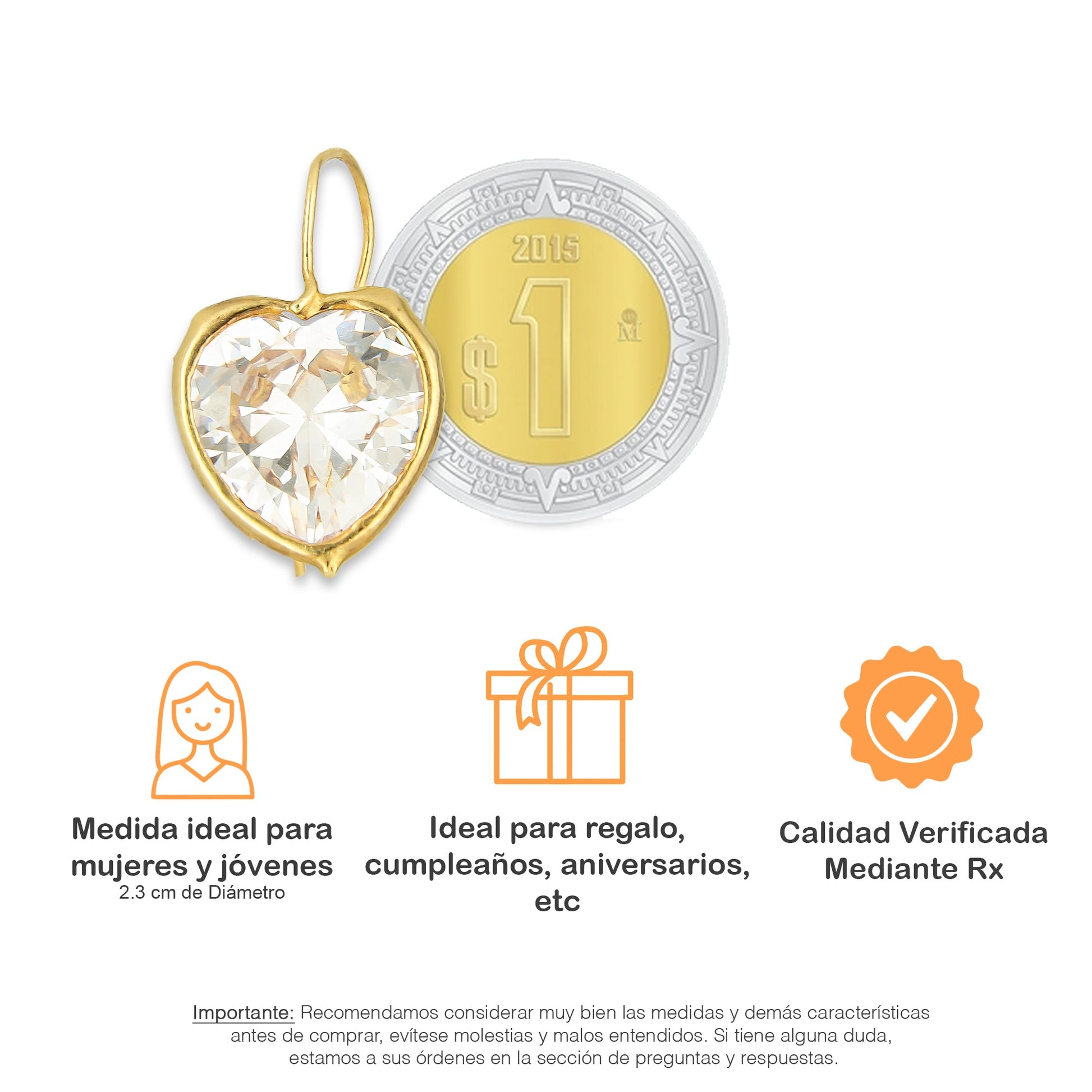 MR10AR018 Arete Arillo Oro Sólido 10K Modelo Corazón Blanco con Bisel 2.3 cm cm de Diámetro