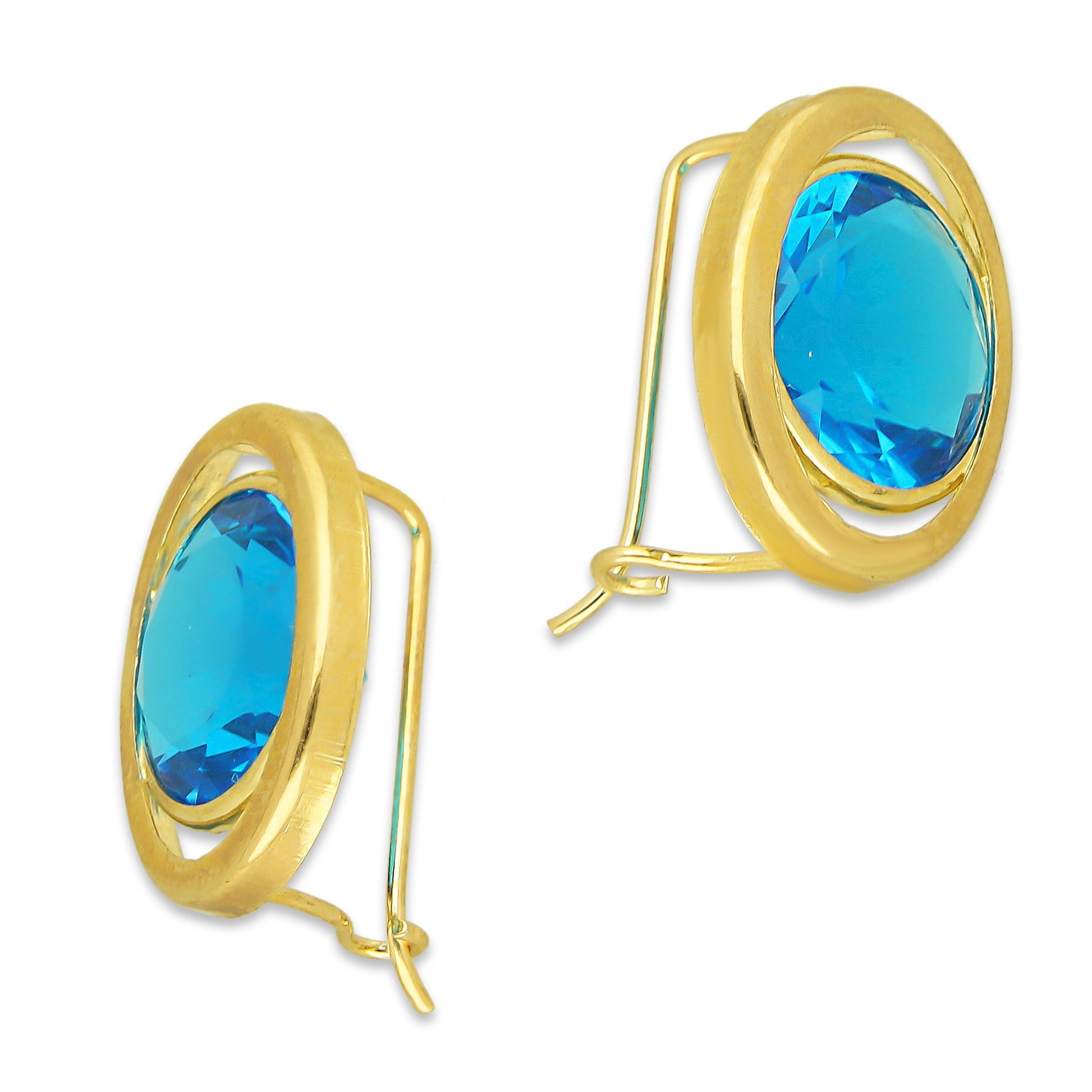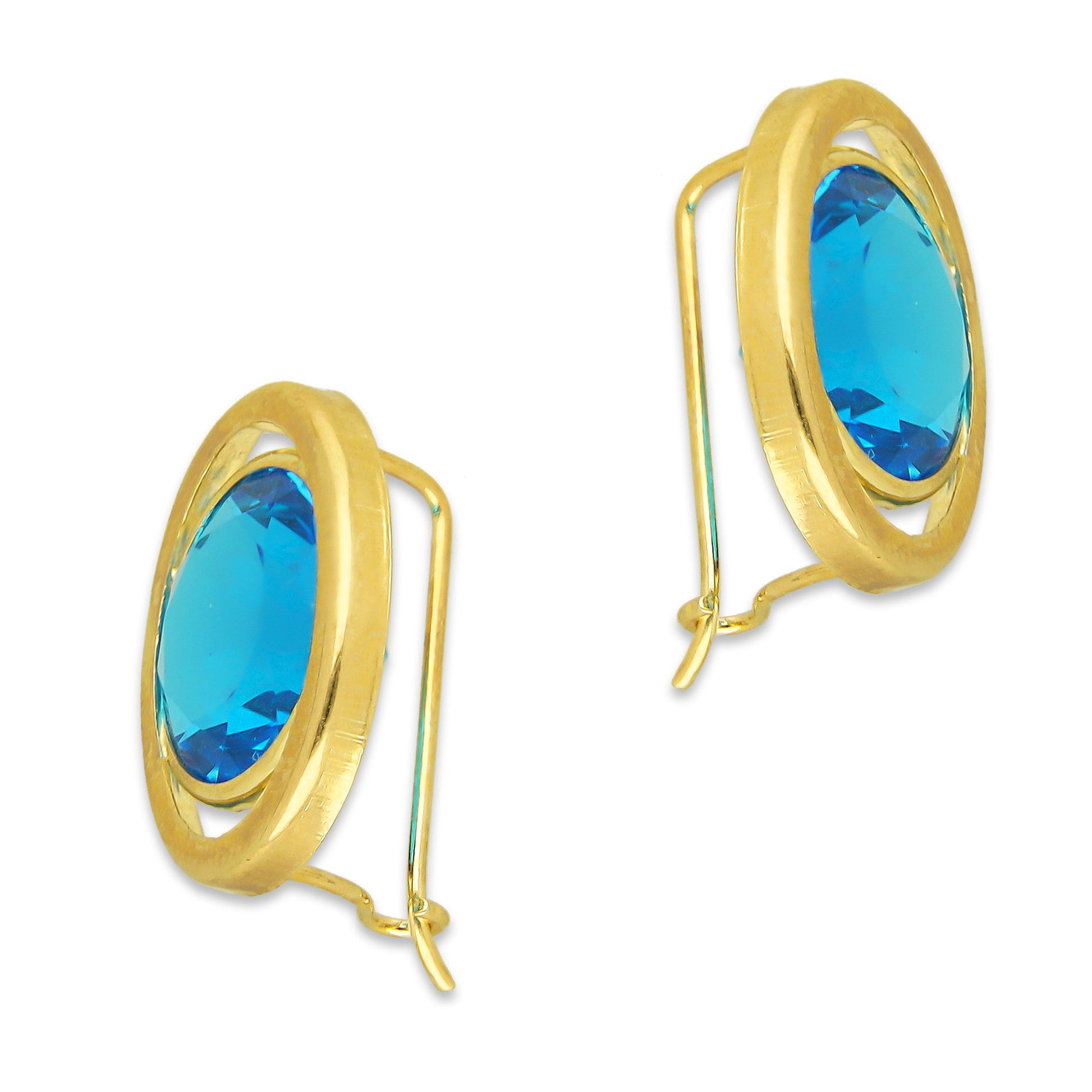 MR10AR019 Arete Arillo Oro Sólido 10K Modelo Óvalo Liso con Zirconia 1.5 cm de Diámetro