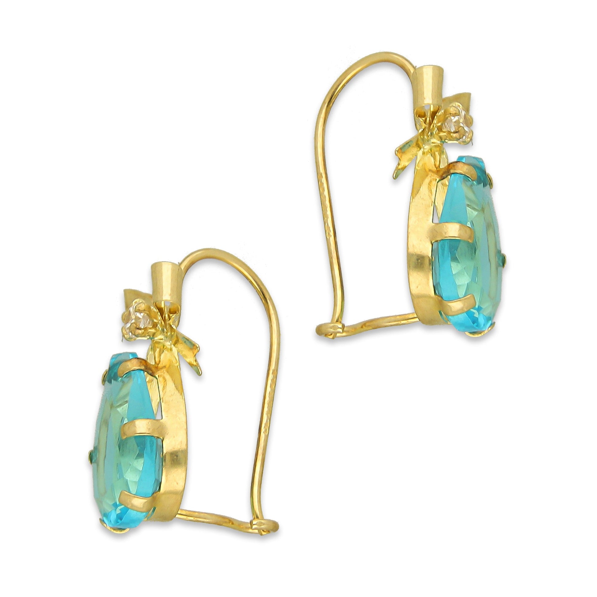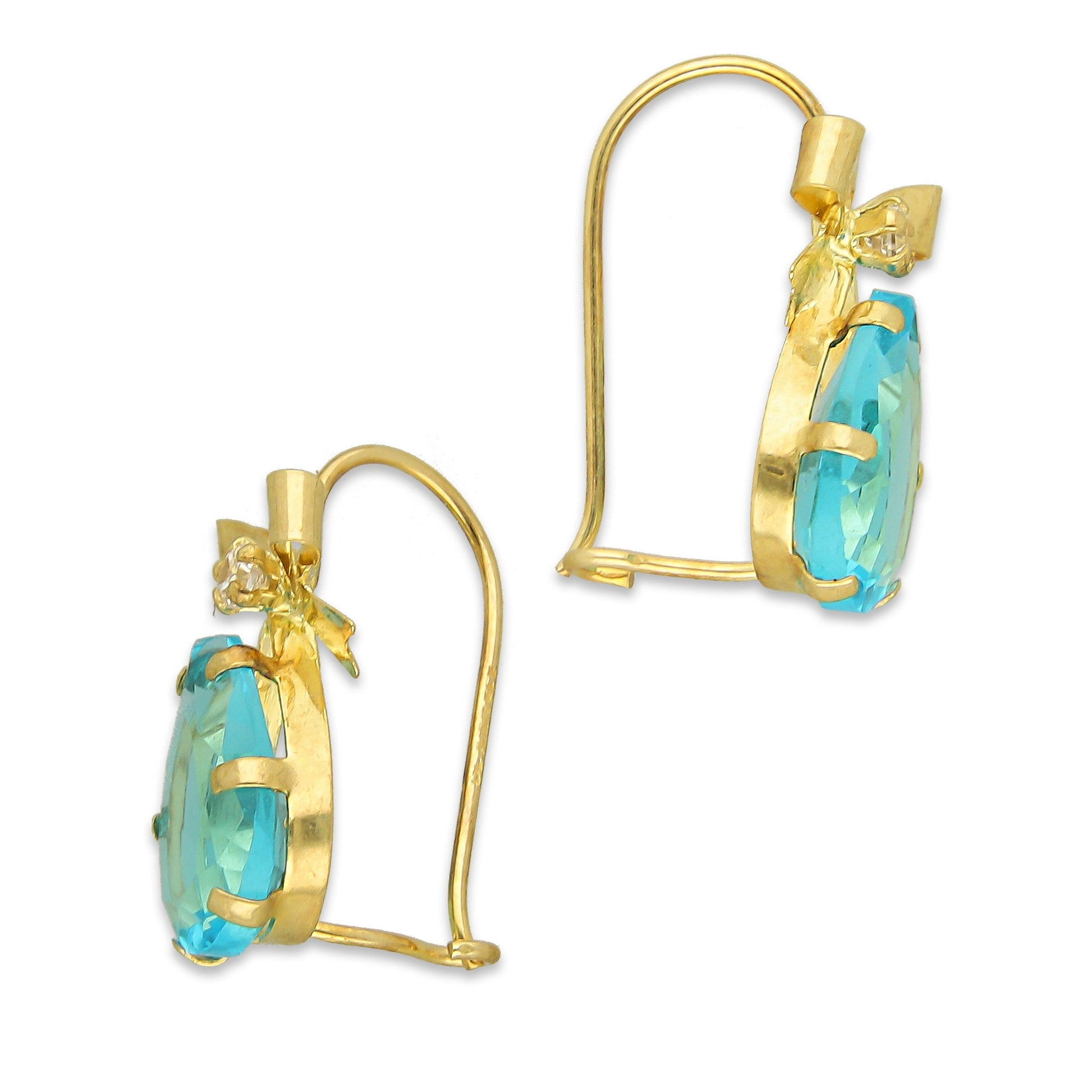 MR10AR020 Arete Arillo Oro Sólido 10K Modelo Moño con Gota Colgante Azul Cielo 1.6 cm de Diámetro