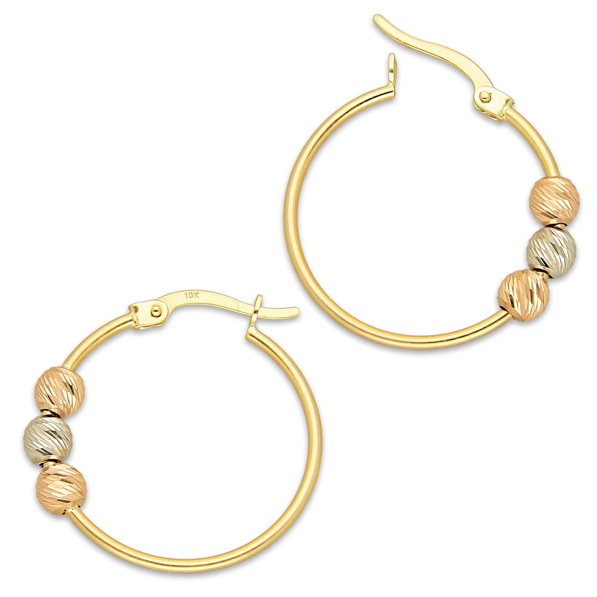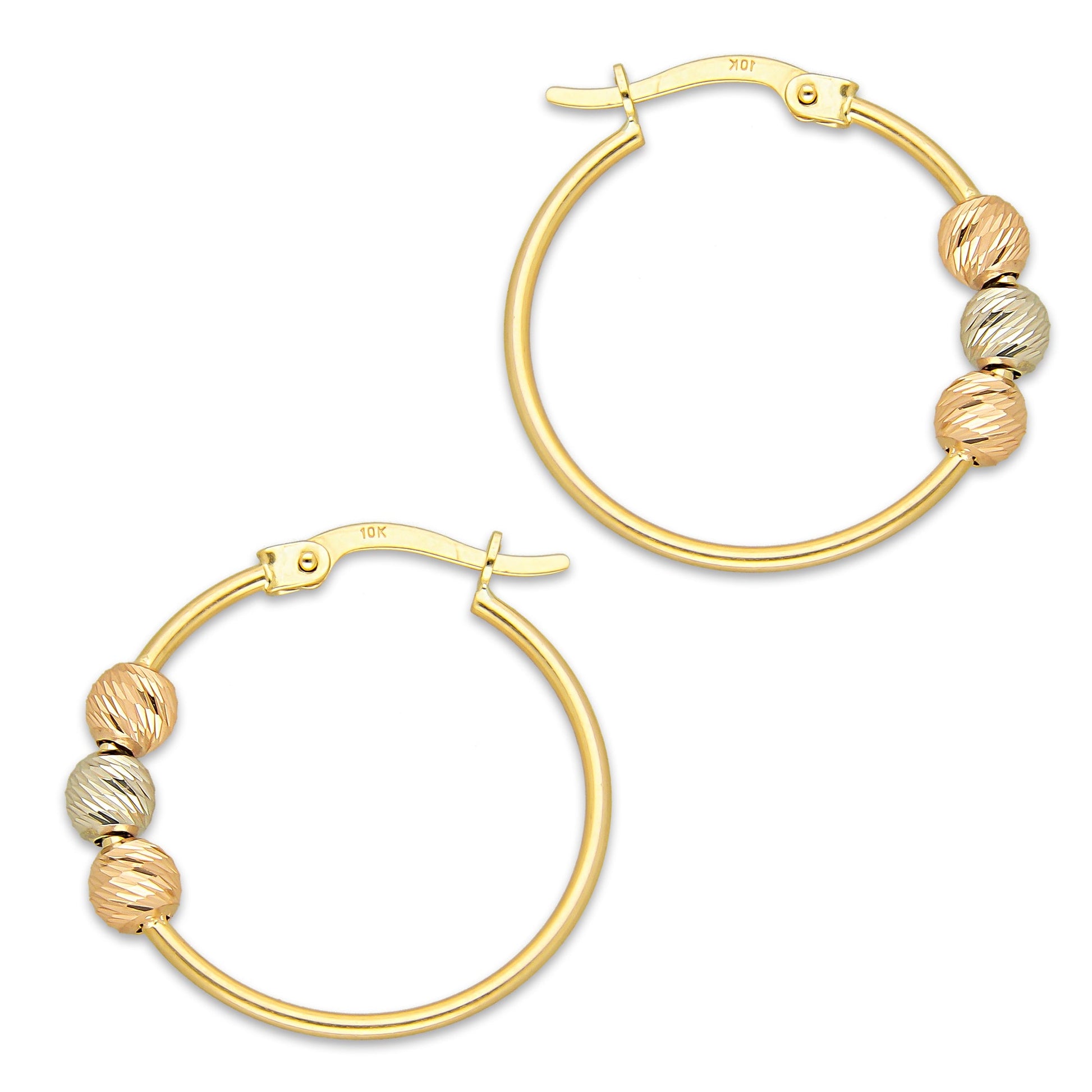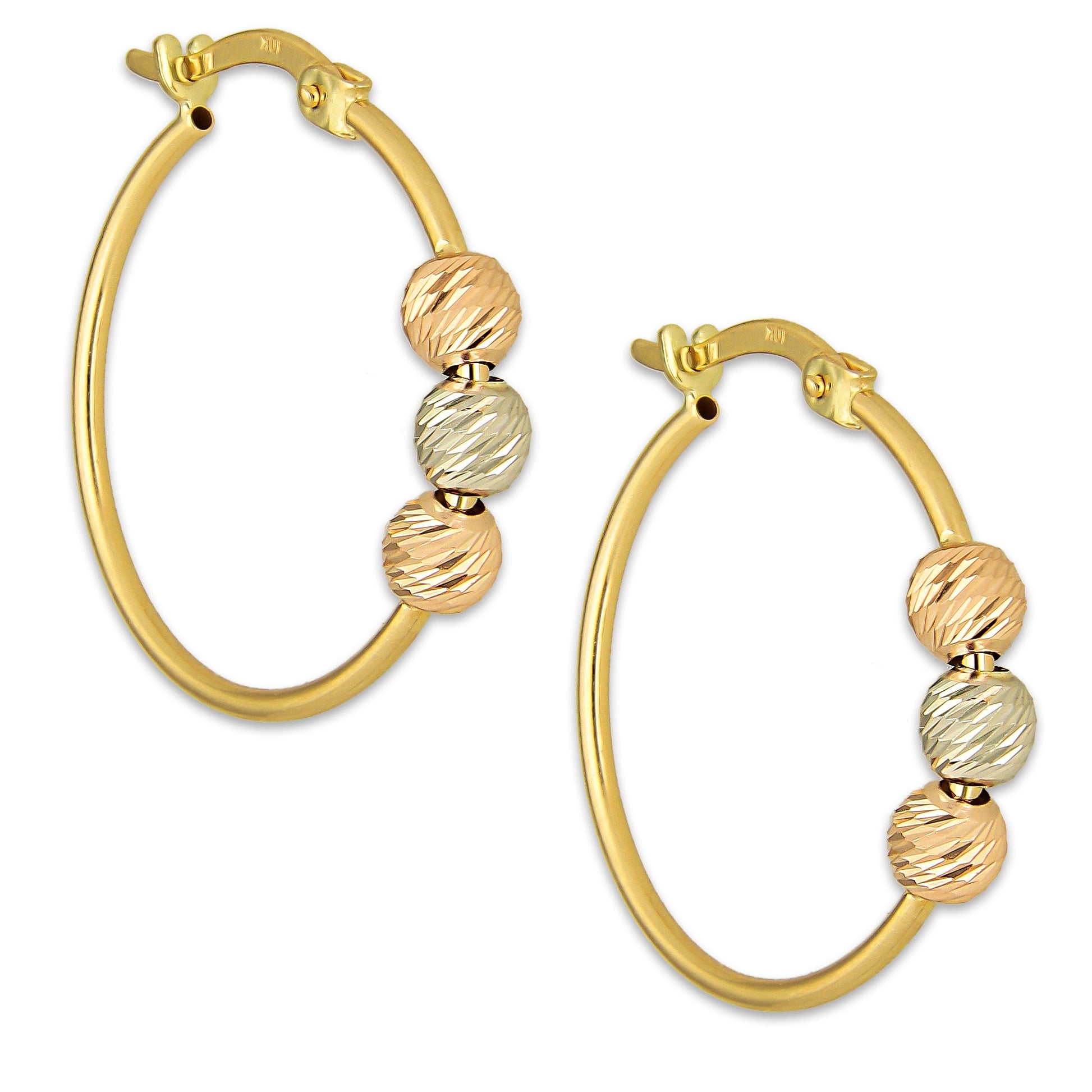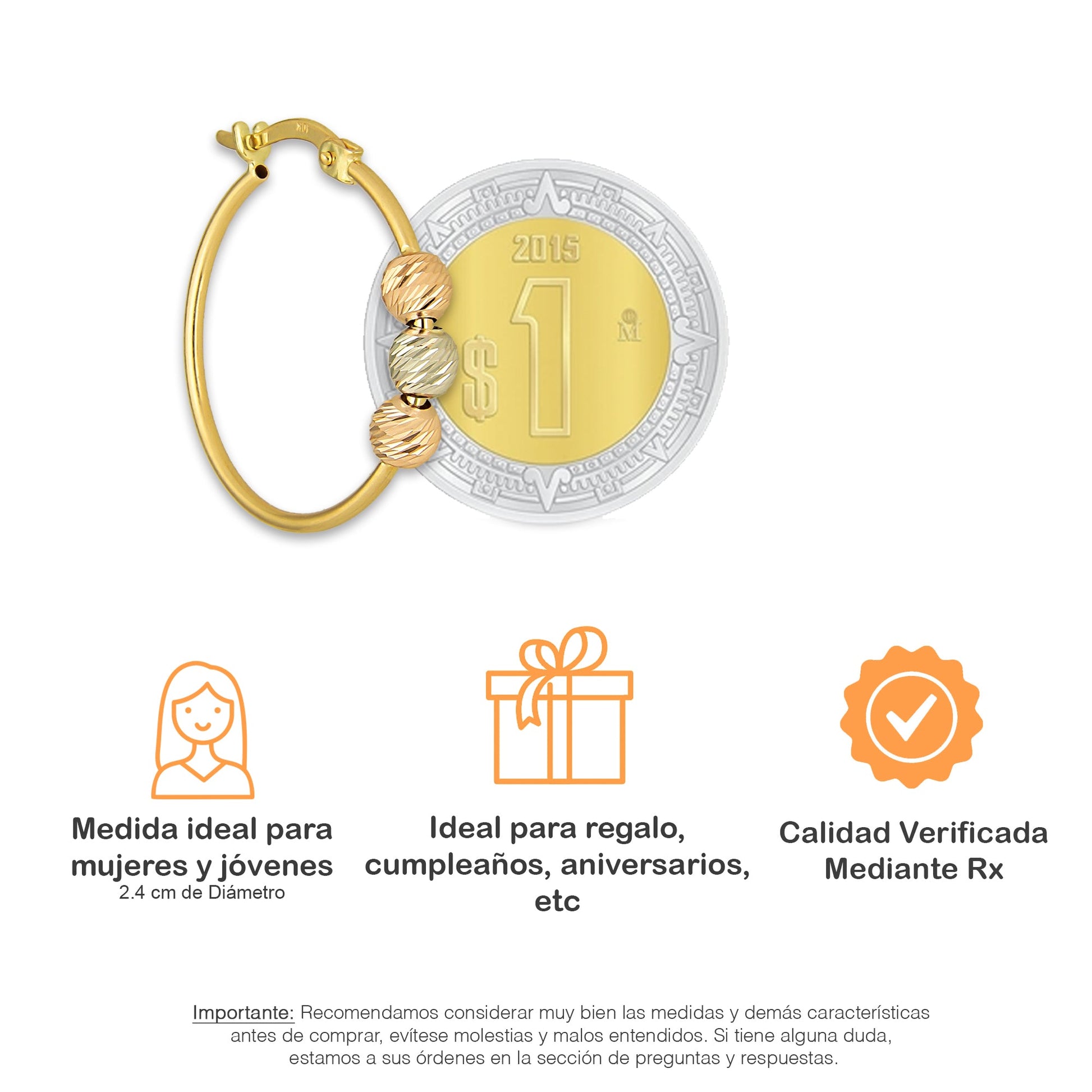 MR10AR036 Arete Arracada Oro Sólido 10K EMF10 Modelo Triada Bolitas Diamantadas Diámetro 2.4 cm
