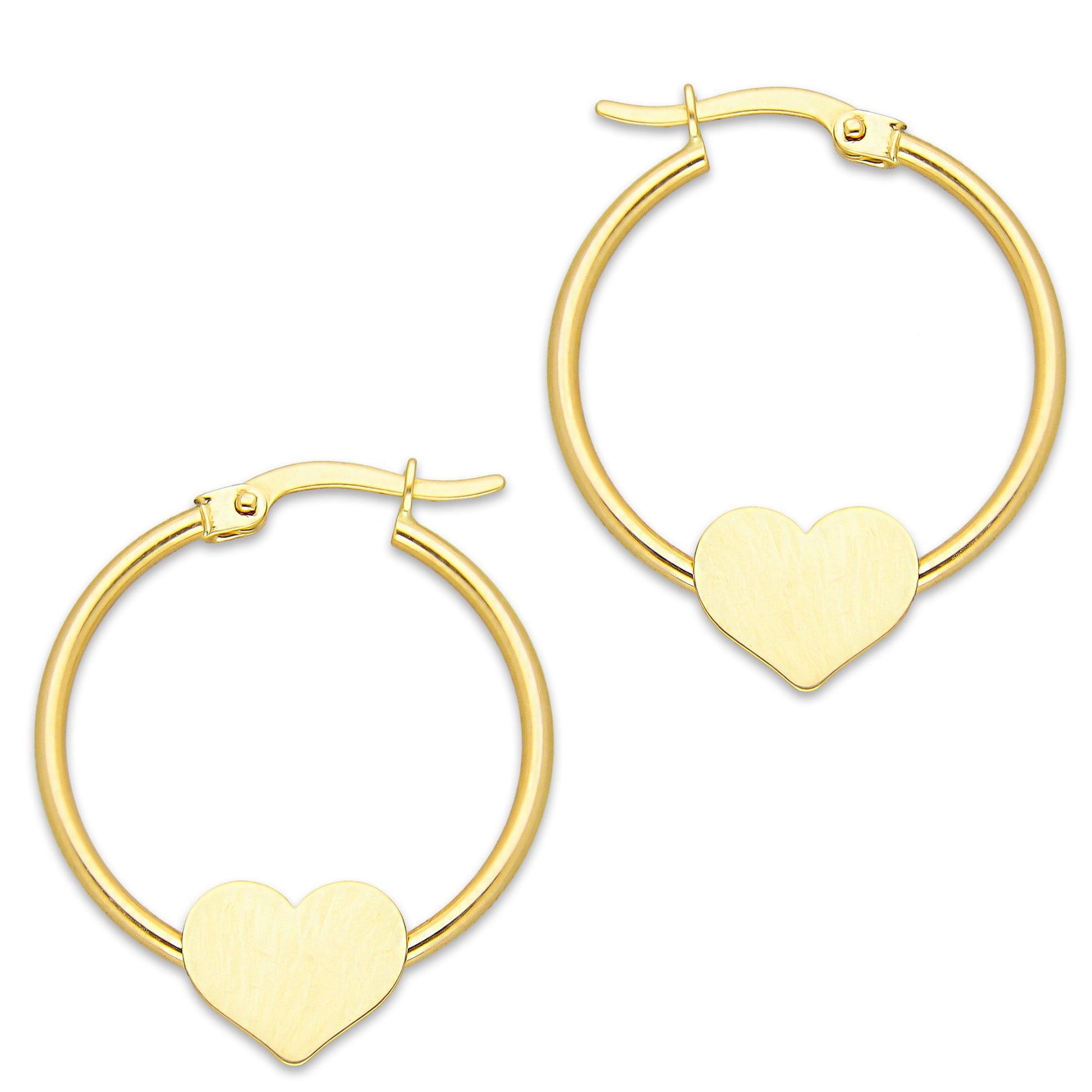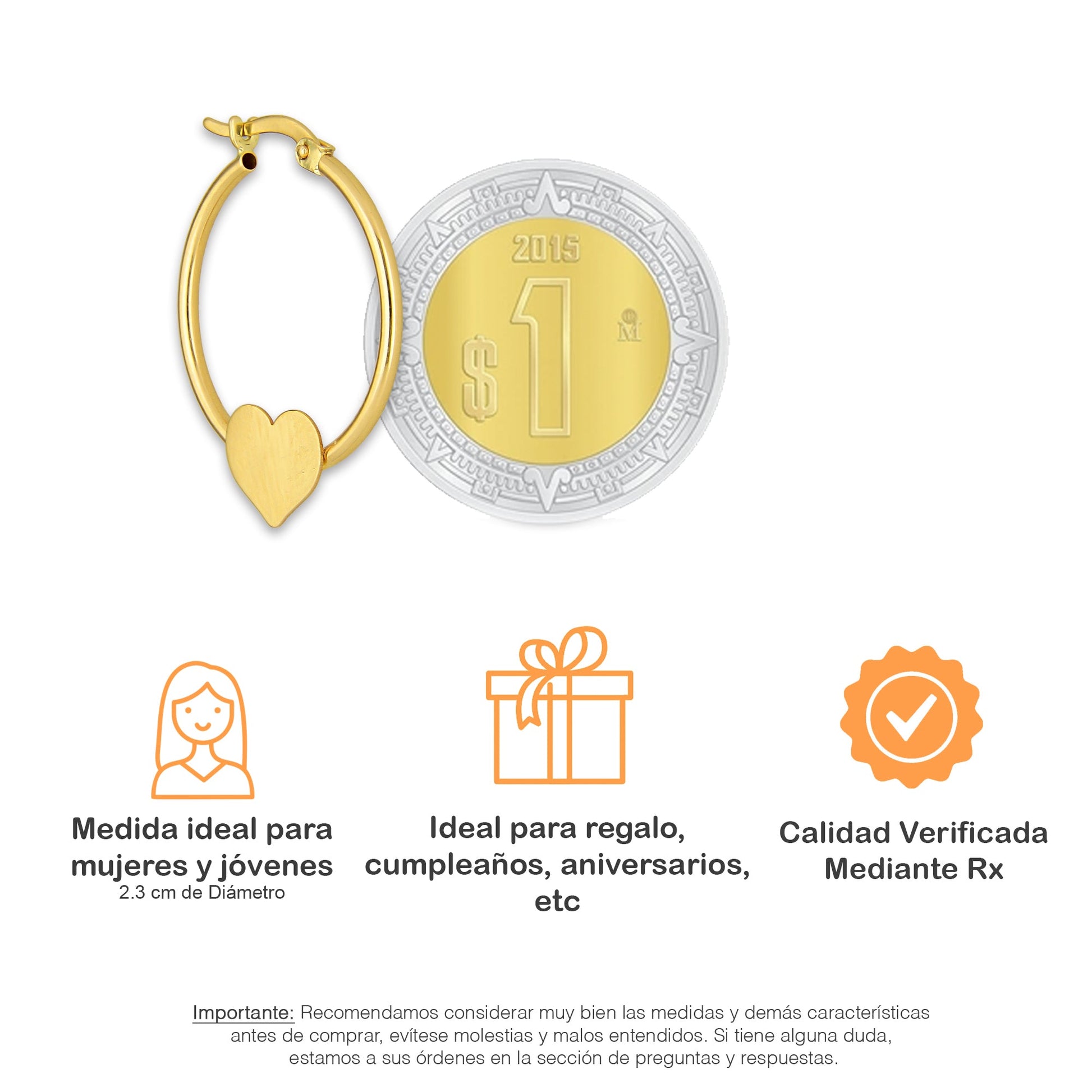 MR10AR037 Arete Arracada Oro Sólido 10K EMF10 Modelo Lisa Corazón Soldado Diámetro 2.3 cm